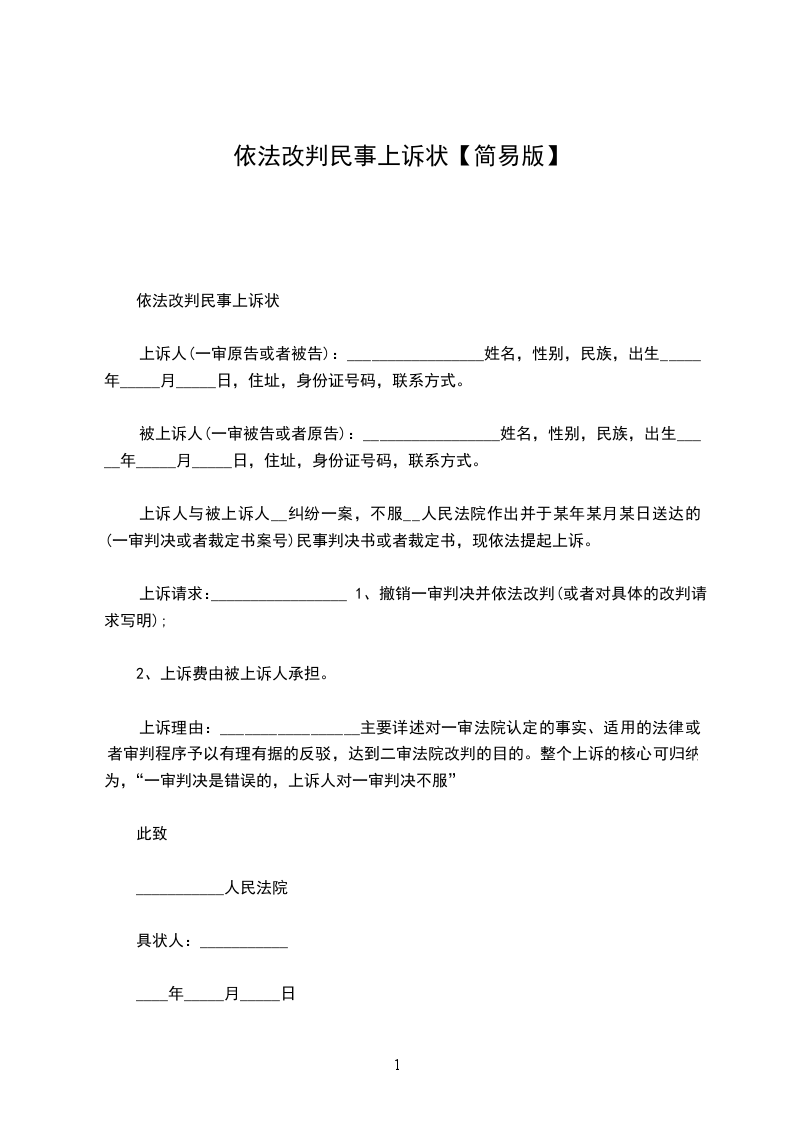上诉请求:_________________1、撤销一审判决并依法改判(或者对具体的改判请求写明);