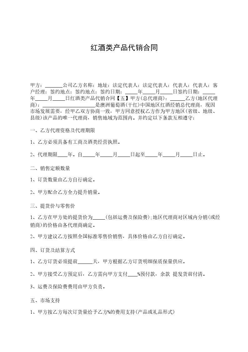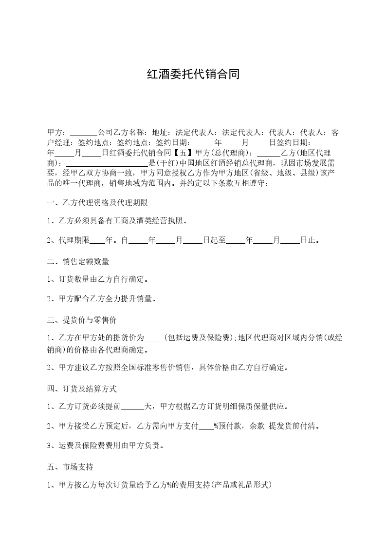 红酒代销合同范本