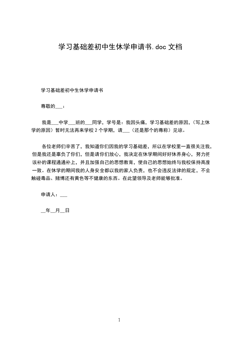 我是___中学___班的___同学,学号是:我因头痛,学习基础差的原因,(写上休学的原因)暂时无法再来学校2个学期,请___(还是那个的尊称)见谅。
