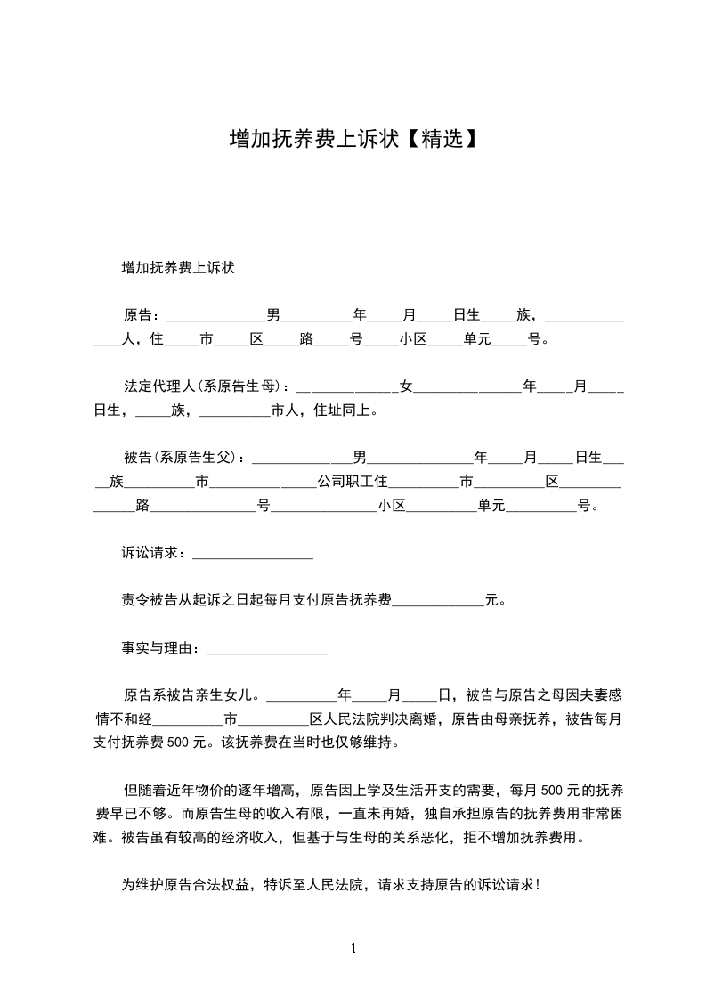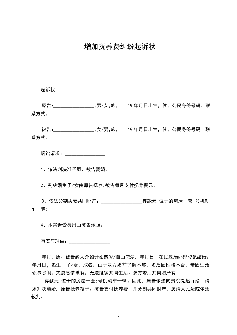 20__增加抚养费上诉状范文