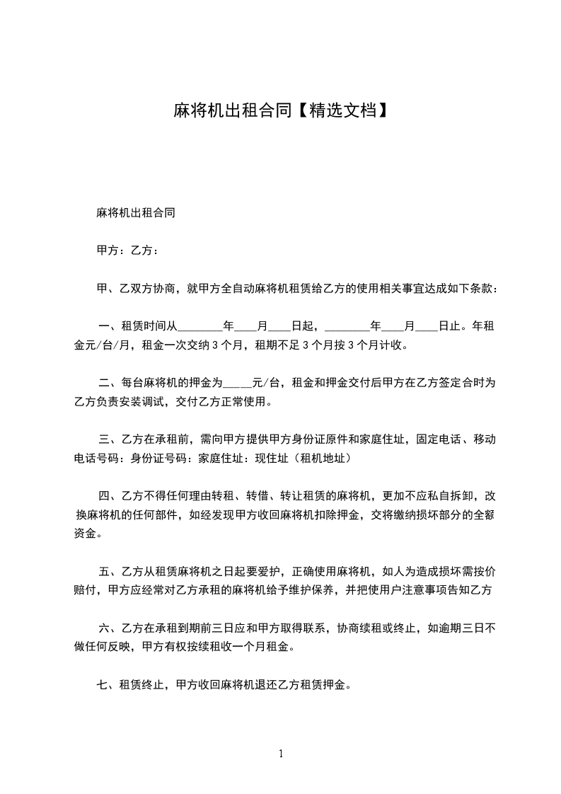 七、租赁终止,甲方收回麻将机退还乙方租赁押金。