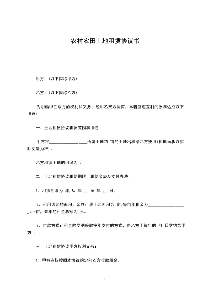 甲方将__________________所属土地约 亩的土地出租给乙方使用(租地面积以实际丈量为准)。