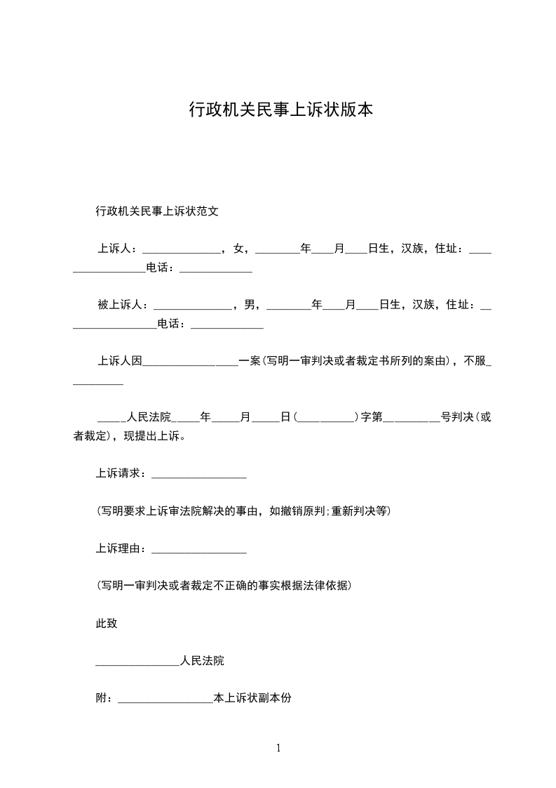 上诉人:______________,女,________年____月____日生,汉族,住址:_________________电话:_____________