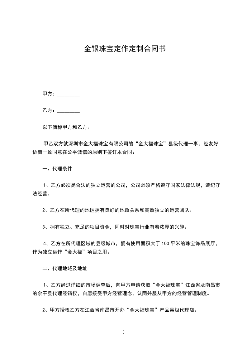 甲方向乙方进购品牌的珠宝产品,就相关情况特订立以下合同:_________________