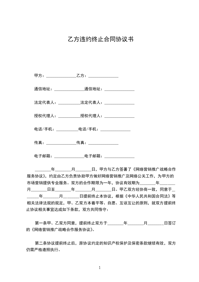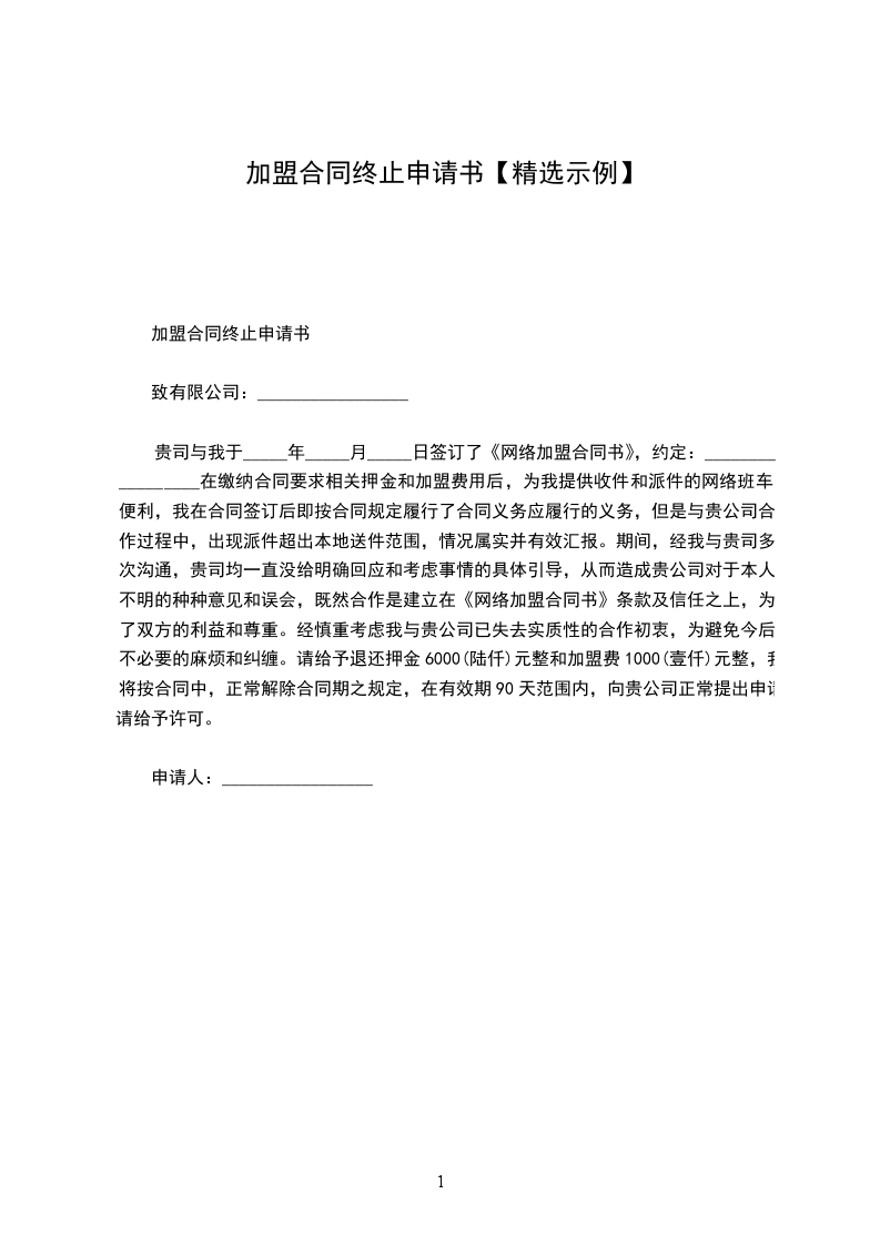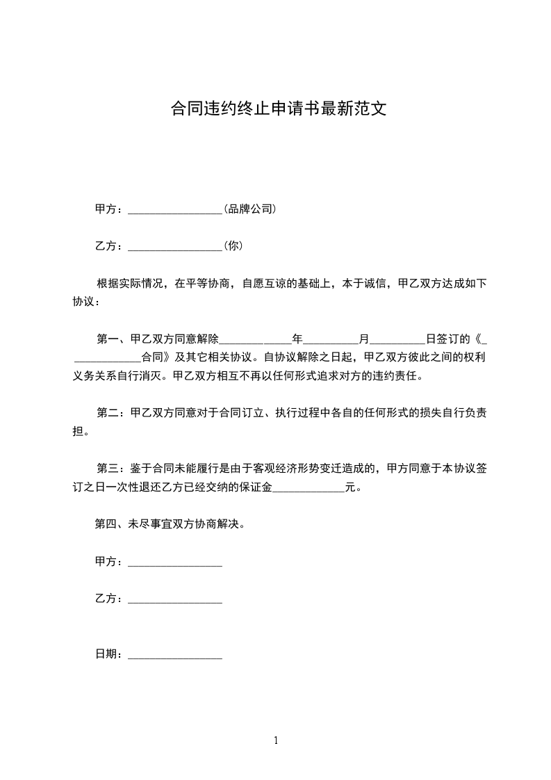 合同违约终止申请书