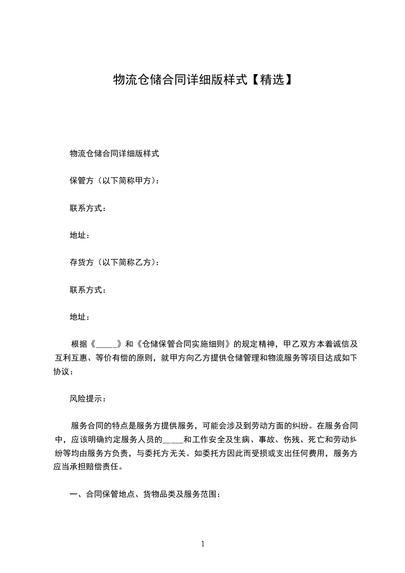 物流仓储合同详细版样式