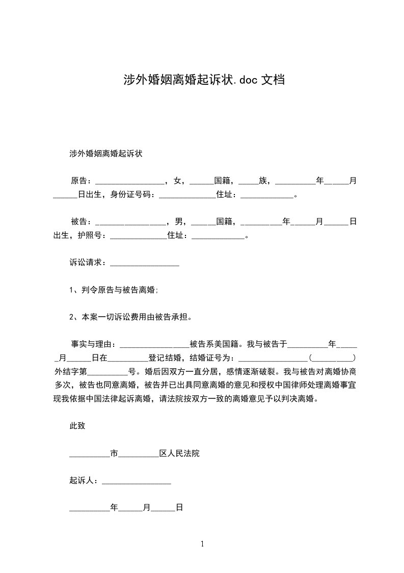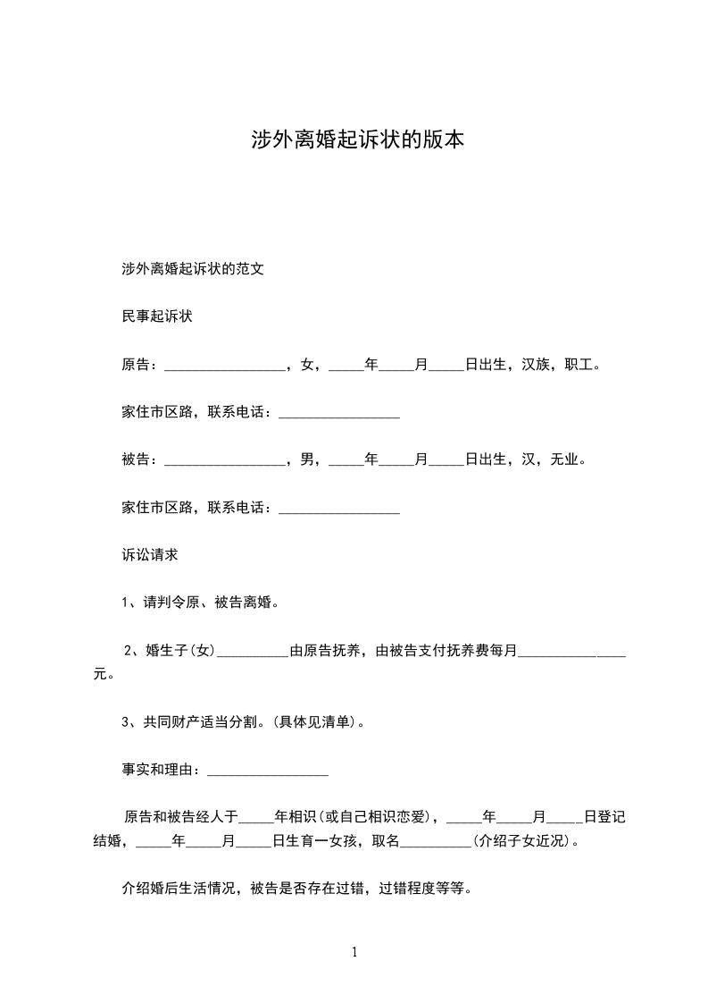 涉外婚姻离婚起诉状