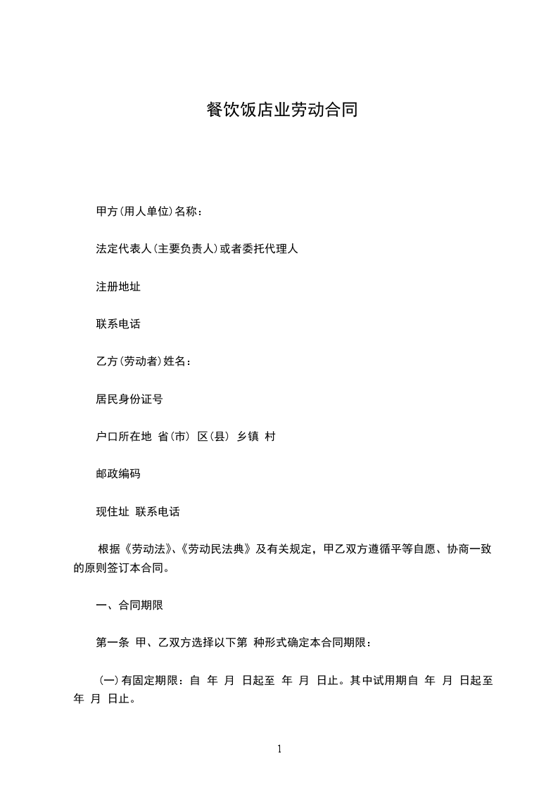一、本劳动合同(参考文本)供餐饮业企业与生产操作服务类岗位的劳动者签订劳动合同时参考使用,主要适用于来自农村的务工人员等流动性较大的劳动者。