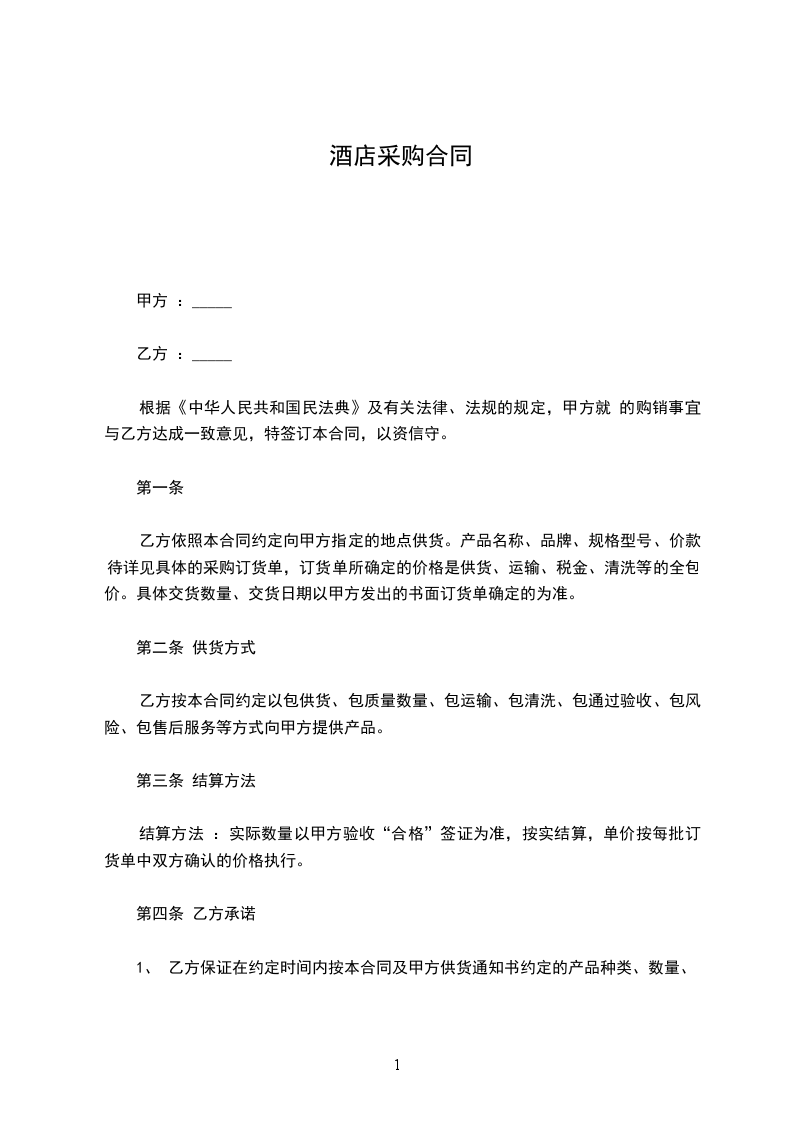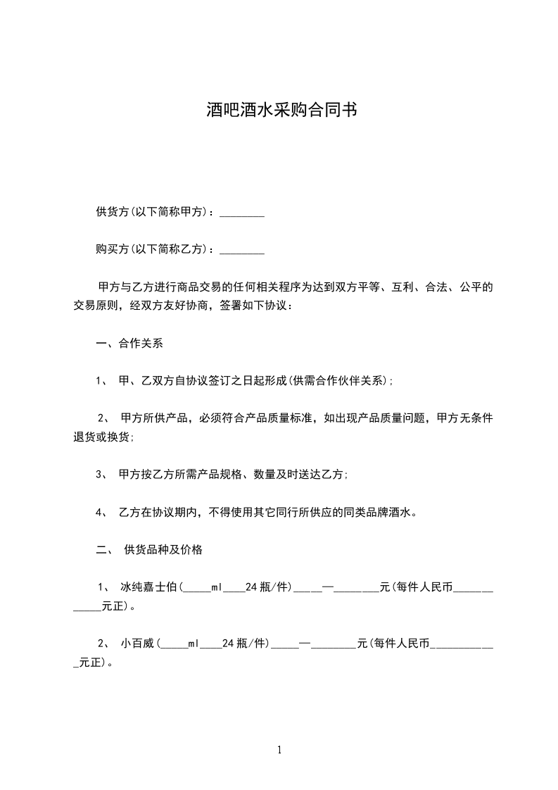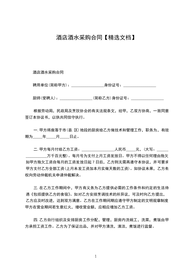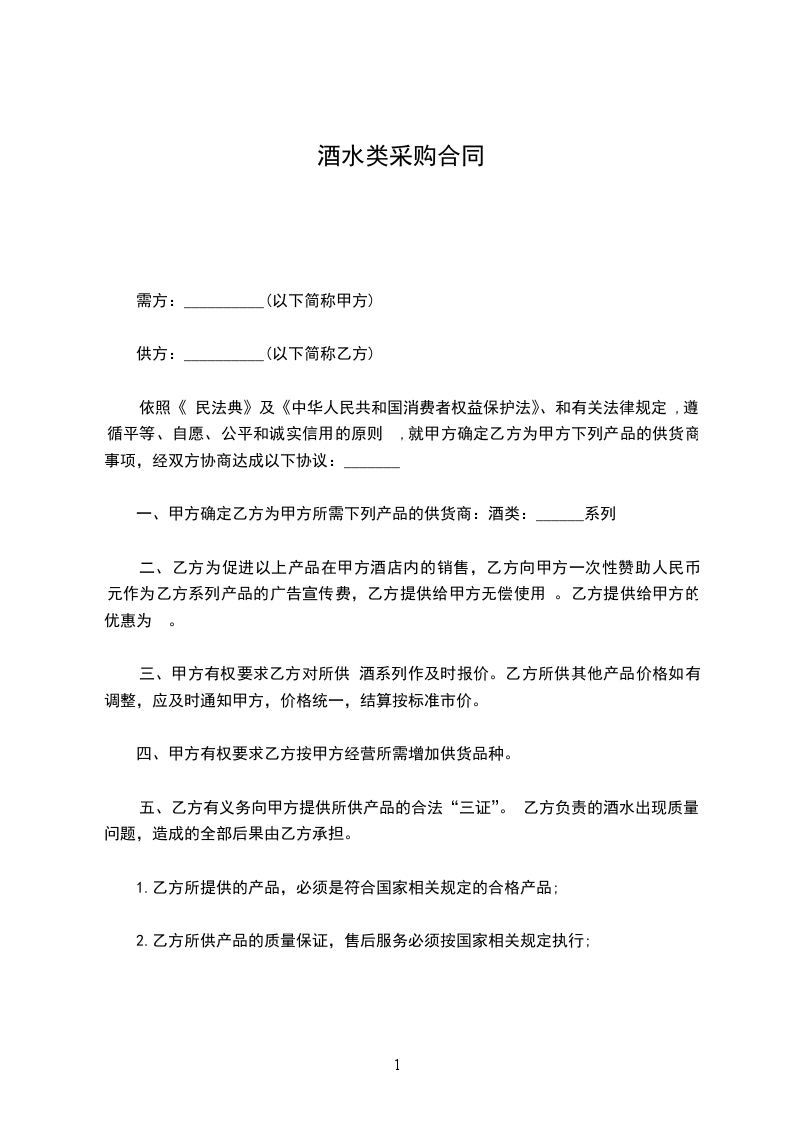 酒店酒水采购合同