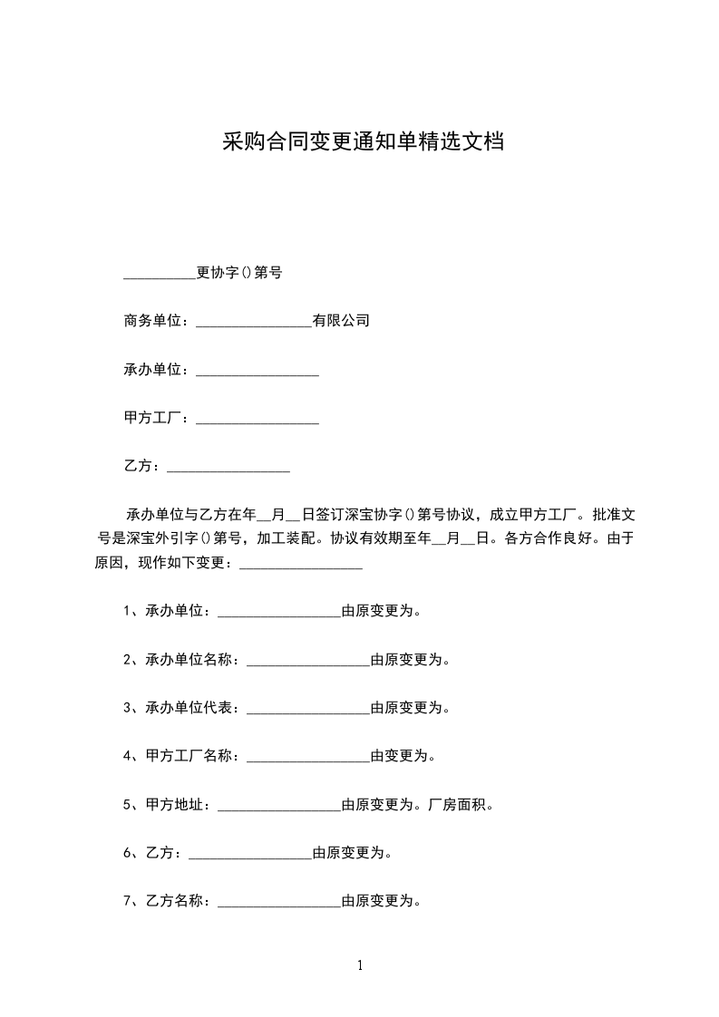 采购合同变更通知单