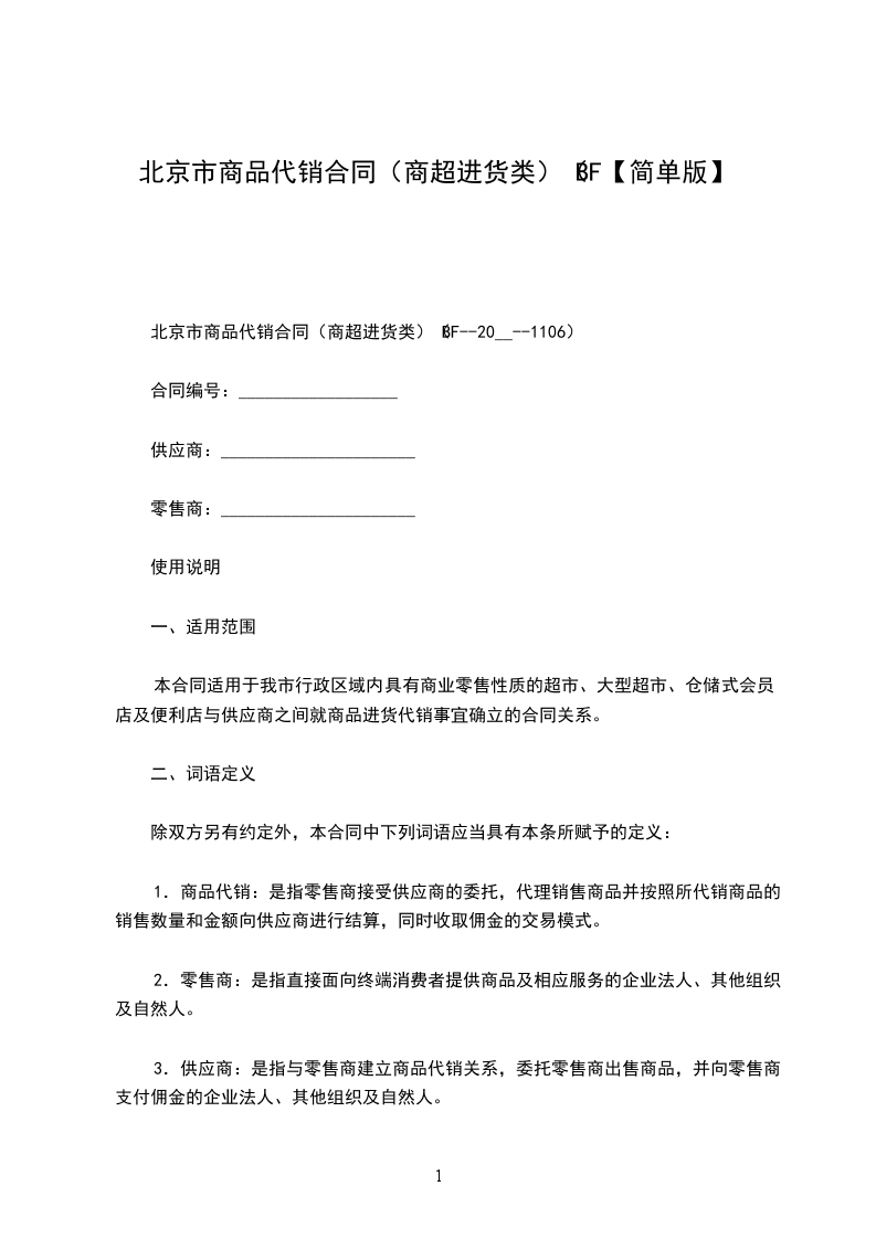 北京市商品代销合同(商超进货类)(BF--20__--1106)