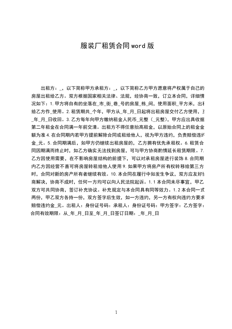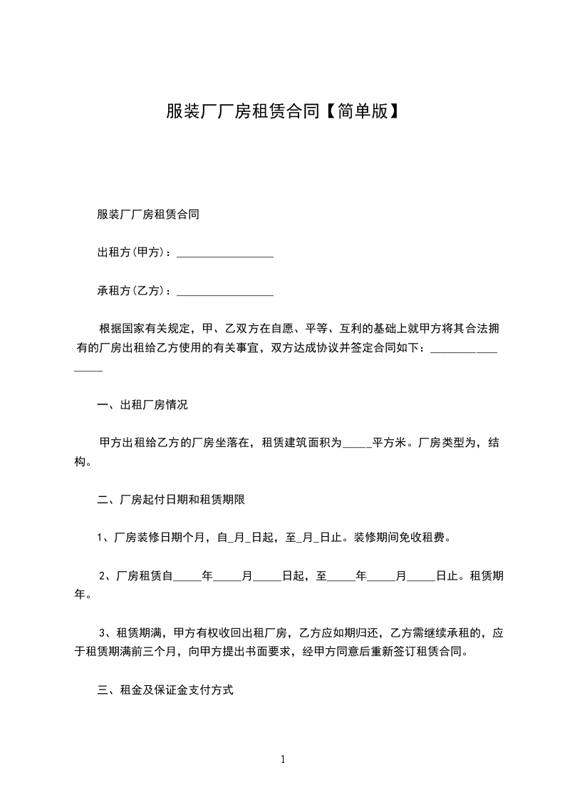 服装厂租赁合同