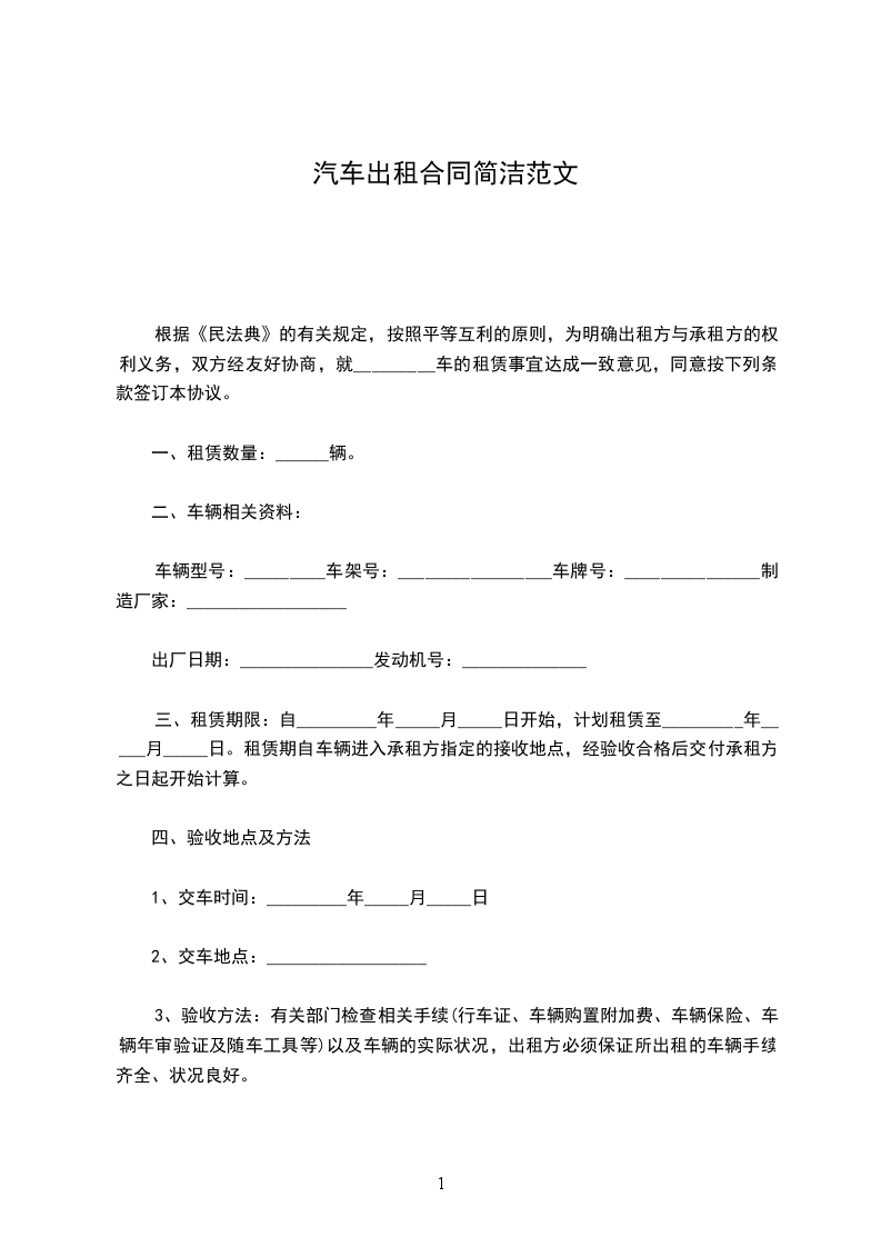 根据《民法典》的有关规定,按照平等互利的原则,为明确出租方与承租方的权利义务,双方经友好协商,就_________车的租赁事宜达成一致意见,同意按下列条款签订本协议。