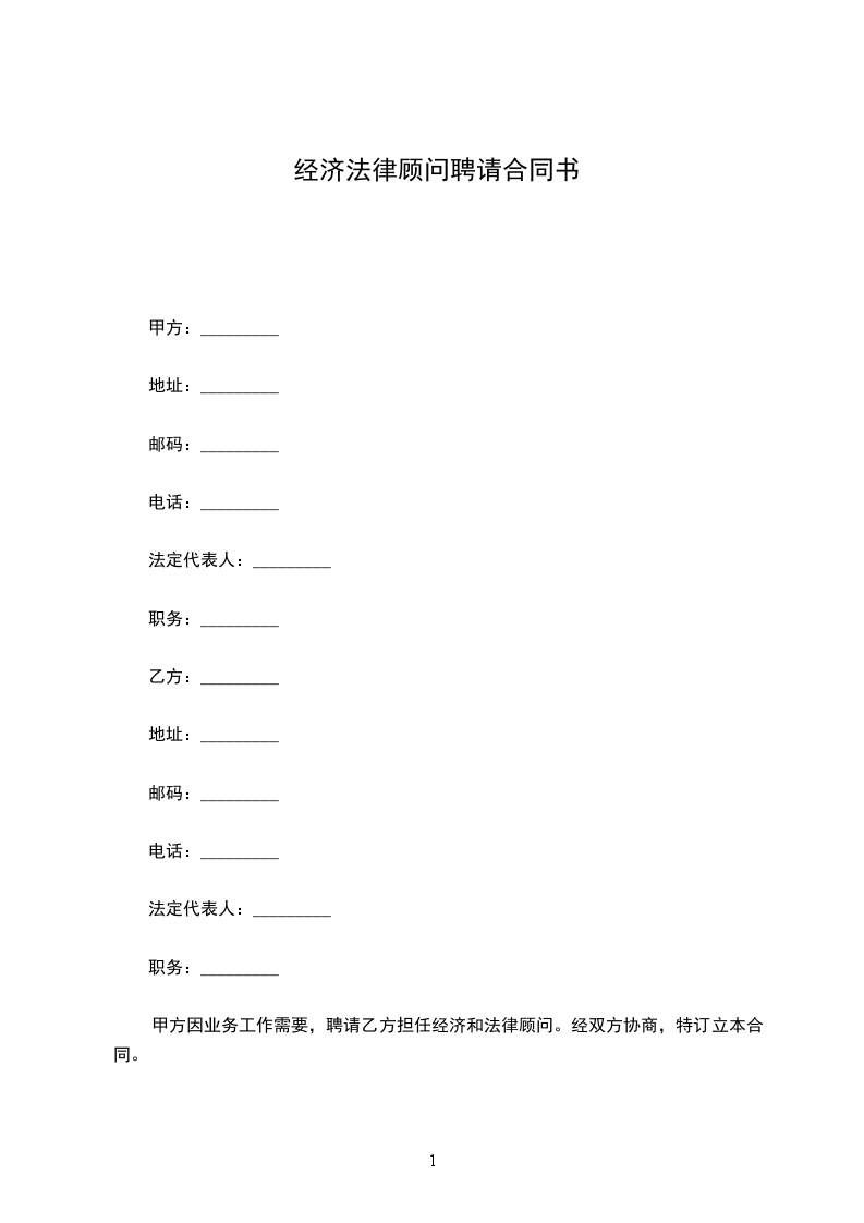 甲方因业务工作需要,聘请乙方担任经济和法律顾问。经双方协商,特订立本合同。