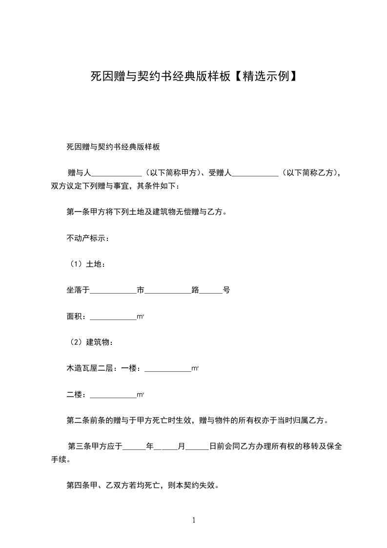第二条前条的赠与于甲方死亡时生效,赠与物件的所有权亦于当时归属乙方。