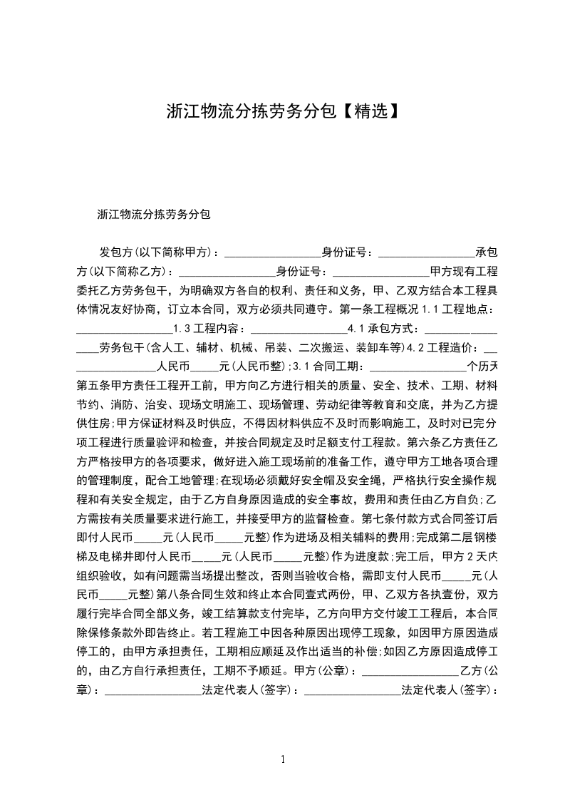 发包方(以下简称甲方):_________________身份证号:_________________承包方(以下简称乙方):_________________身份证号:_________________甲方现有工程委托乙方劳务包干,为明确双方各自的权利、责任和义务,甲、乙双方结合本工程具体情况友好协商,订立本合同,双方必须共同遵守。第一条工程概况1.1工程地点:_________________1.3工程内容:_________________4.1承包方式:_________________劳务包干(含人工、辅材、机械、吊装、二次搬运、装卸车等)4.2工程造价:_________________人民币_____元(人民币整);3.1合同工期:_________________个历天。第五条甲方责任工程开工前,甲方向乙方进行相关的质量、安全、技术、工期、材料节约、消防、治安、现场文明施工、现场管理、劳动纪律等教育和交底,并为乙方提供住房;甲方保证材料及时供应,不得因材料供应不及时而影响施工,及时对已完分项工程进行质量验评和检查,并按合同规定及时足额支付工程款。第六条乙方责任乙方严格按甲方的各项要求,做好进入施工现场前的准备工作,遵守甲方工地各项合理的管理制度,配合工地管理;在现场必须戴好安全帽及安全绳,严格执行安全操作规程和有关安全规定,由于乙方自身原因造成的安全事故,费用和责任由乙方自负;乙方需按有关质量要求进行施工,并接受甲方的监督检查。第七条付款方式合同签订后即付人民币_____元(人民币_____元整)作为进场及相关辅料的费用;完成第二层钢楼梯及电梯井即付人民币_____元(人民币_____元整)作为进度款;完工后,甲方2天内组织验收,如有问题需当场提出整改,否则当验收合格,需即支付人民币_____元(人民币_____元整)第八条合同生效和终止本合同壹式两份,甲、乙双方各执壹份,双方履行完毕合同全部义务,竣工结算款支付完毕,乙方向甲方交付竣工工程后,本合同除保修条款外即告终止。若工程施工中因各种原因出现停工现象,如因甲方原因造成停工的,由甲方承担责任,工期相应顺延及作出适当的补偿;如因乙方原因造成停工的,由乙方自行承担责任,工期不予顺延。甲方(公章):_________________乙方(公章):_________________法定代表人(签字):_________________法定代表人(签字):______________________________年__________月__________日_____________年__________月__________日