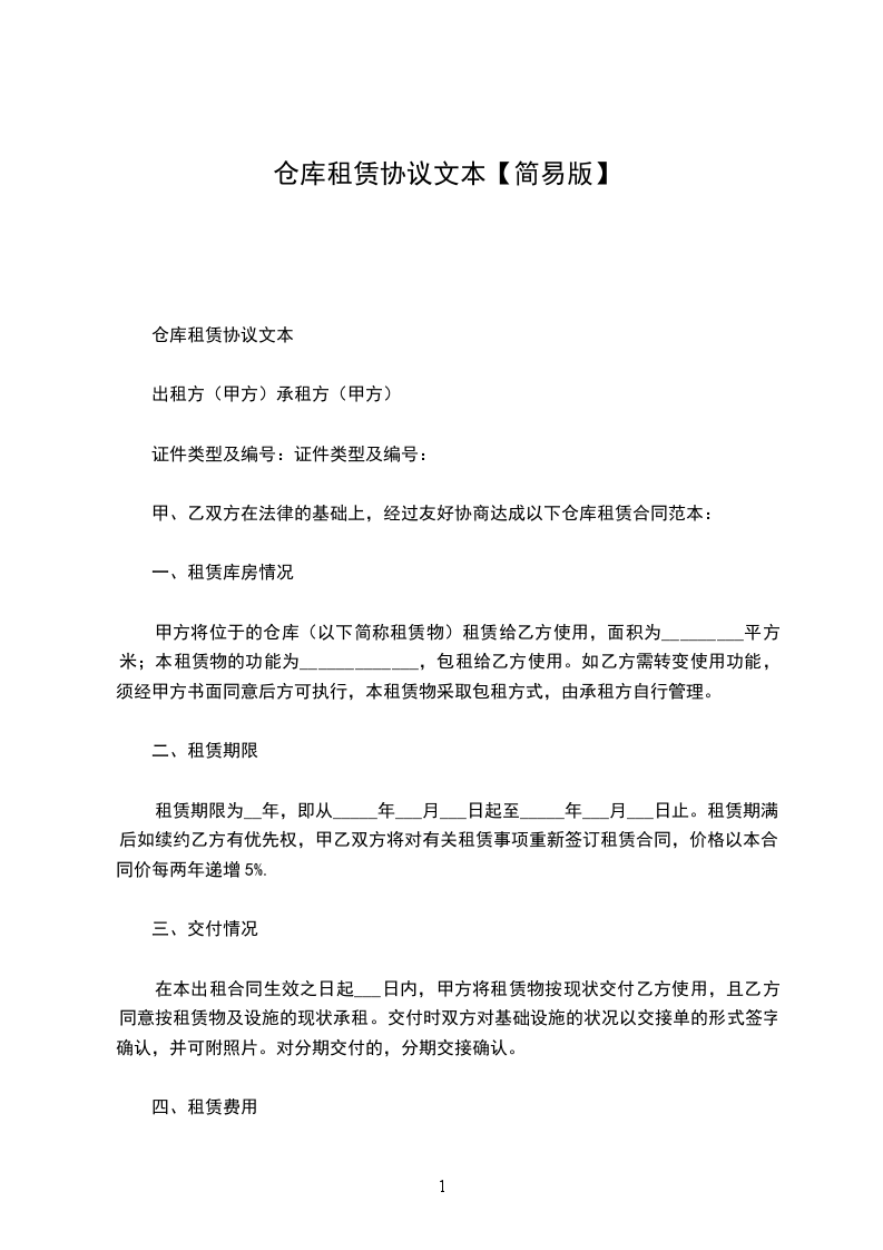 仓库租赁协议文本