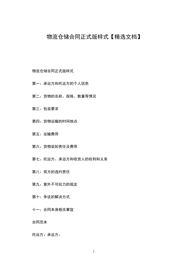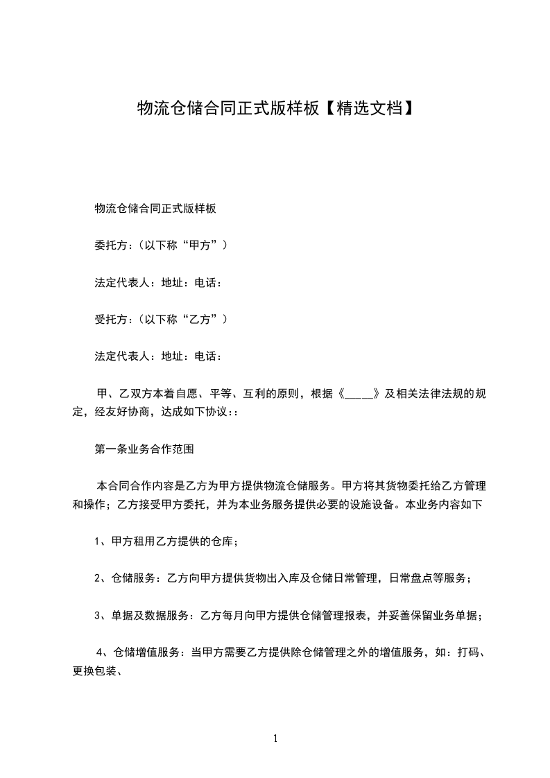 物流仓储合同正式版样式