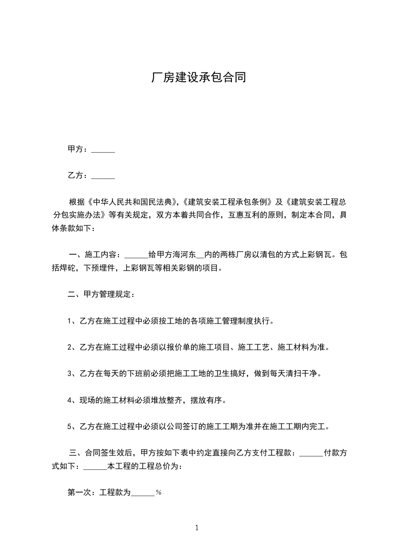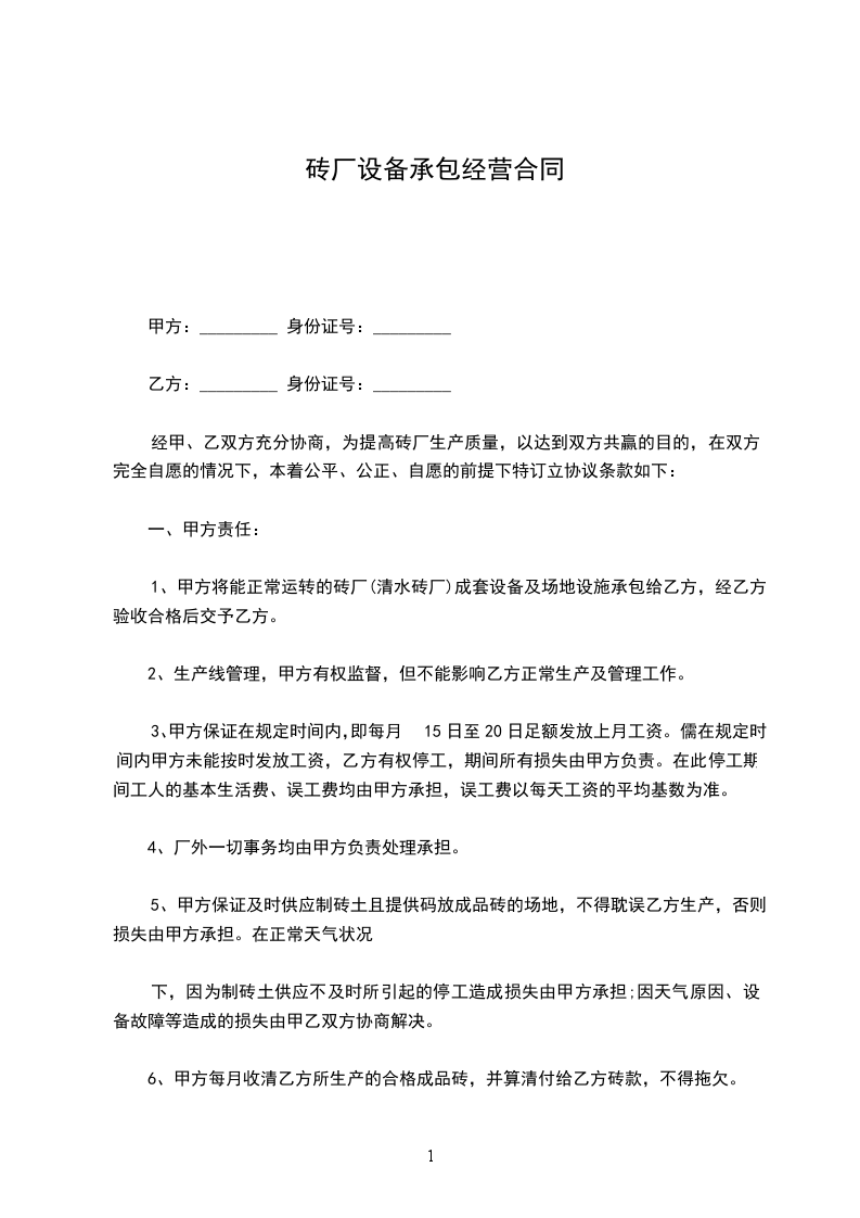 经友好协商,甲方将址在 的厂房及设备承包给乙方经营,甲乙双方特签定如下合同条款,以资共同遵守:
