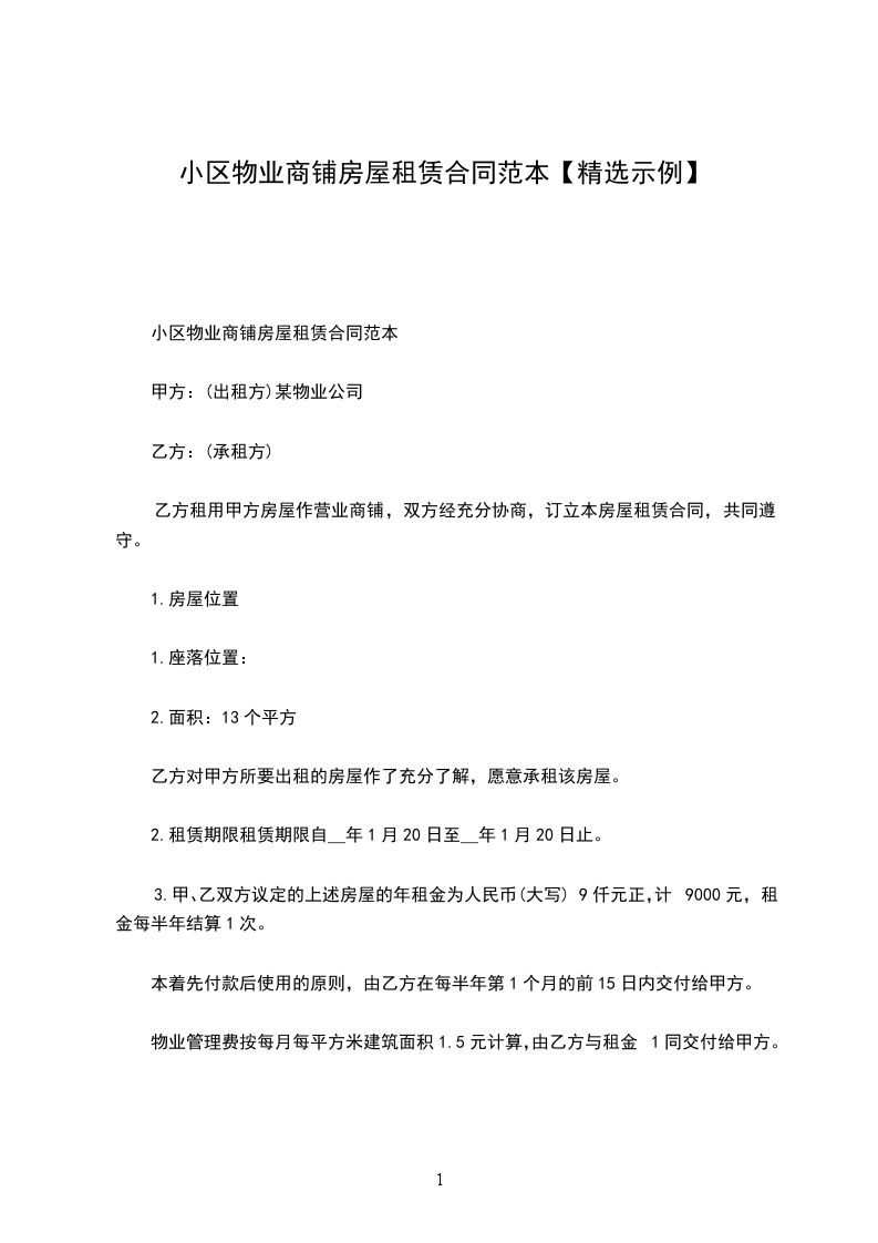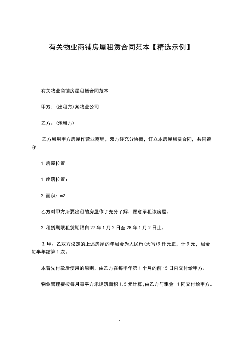 物业用房租赁合同