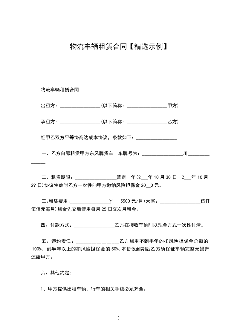 1.乙方逾期交付房屋,每逾期一日,由甲方按月租金额的千分之五向乙方加收违约金。