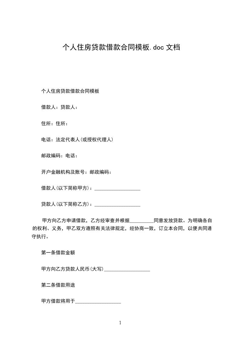 个人住房贷款借款合同模板