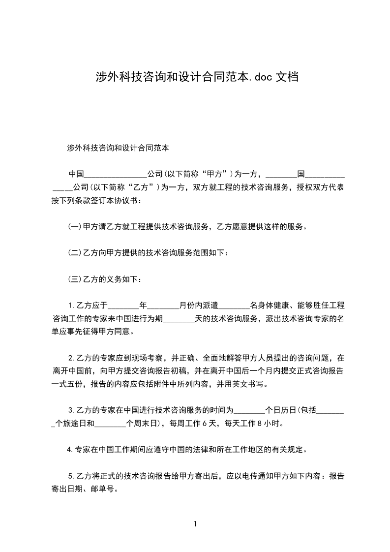 涉外科技咨询和设计合同范本
