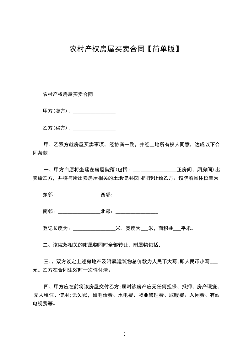 农村产权房屋买卖合同
