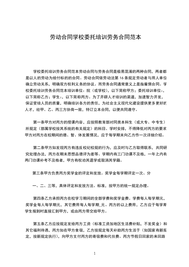 第一条 甲方对丙方的授课内容,应按照教育部对同类本科生(或大专、中专生)所规定(部属学校按其系统的有关规定)的科目、学时安排,不得降低对丙方的要求。甲方对丙方在校期间的德、智、体发展情况,应于每学期末向乙方作一次详细介绍。