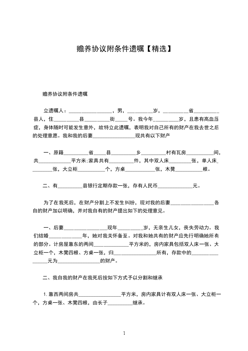 立遗嘱人:_________________,男,__________岁,__________省__________县人,住__________县__________街_____号。我今年__________岁,且患有高血压症,身体随时可能发生意外,故特立此遗嘱,表明我对自己所有的财产在我去世之后的处理意愿。我和我的后妻_________________现共有以下财产
