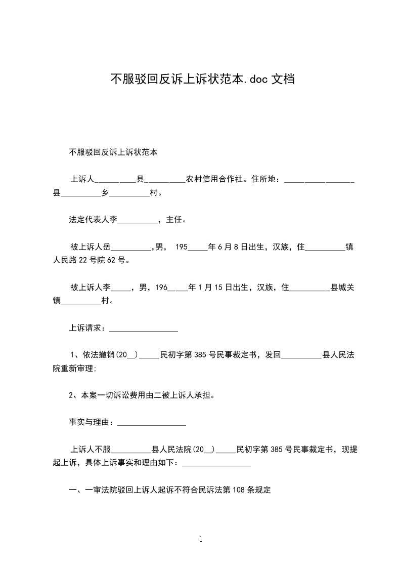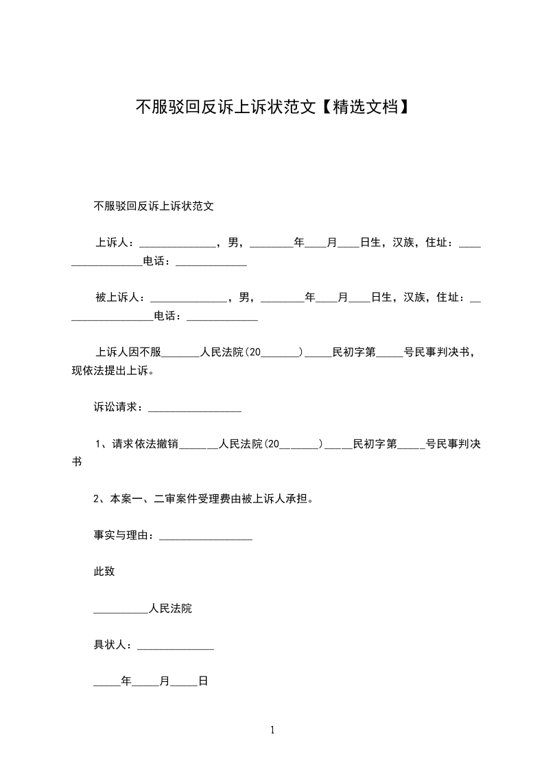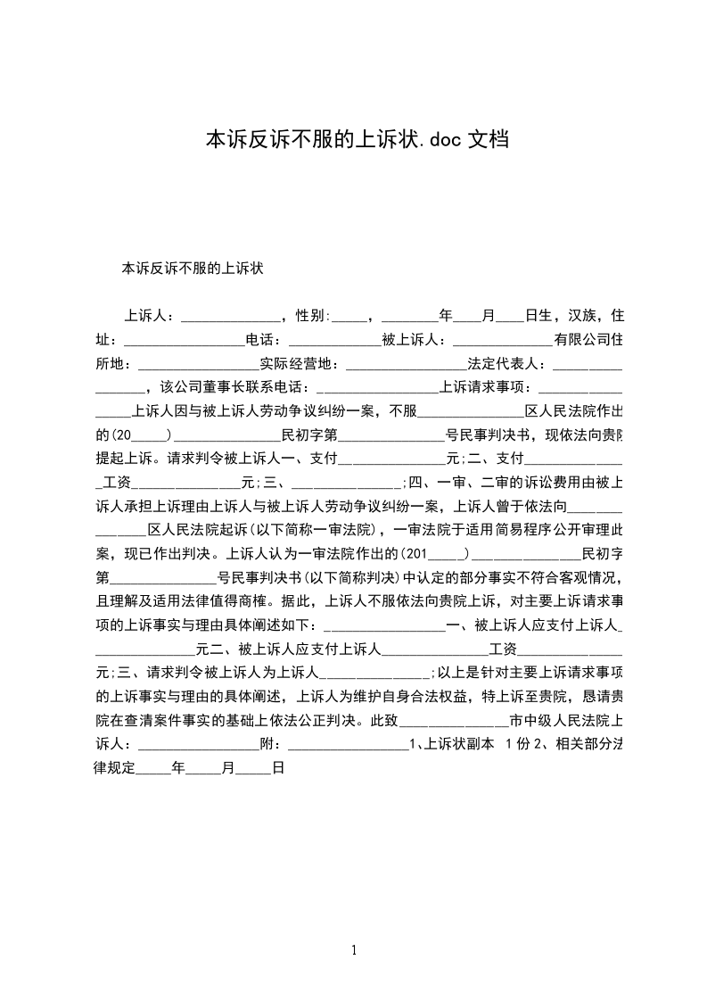 对反诉不服上诉状