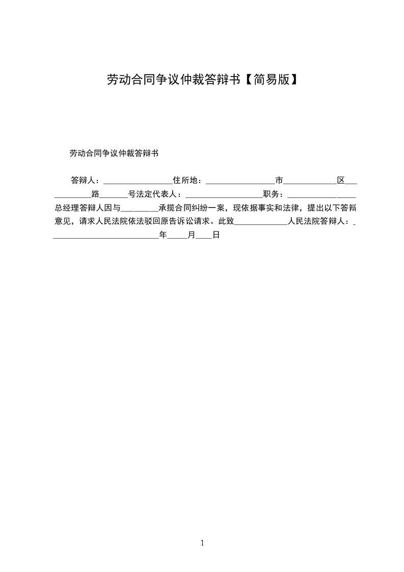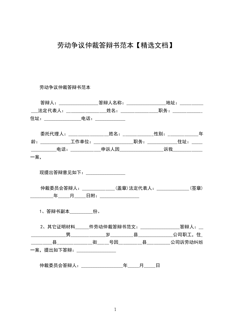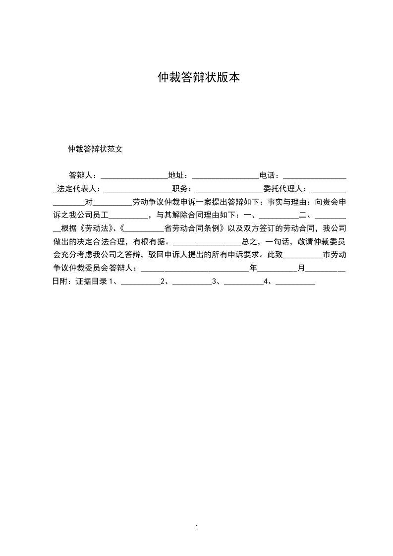 2、其它证明材料______件劳动仲裁答辩书范文:_________________答辩人:_________________男_______________岁__________县_______________公司职工,住__________县_______________街_____号因__________县__________公司诉劳动纠纷一案,提出如下答辩:_________________