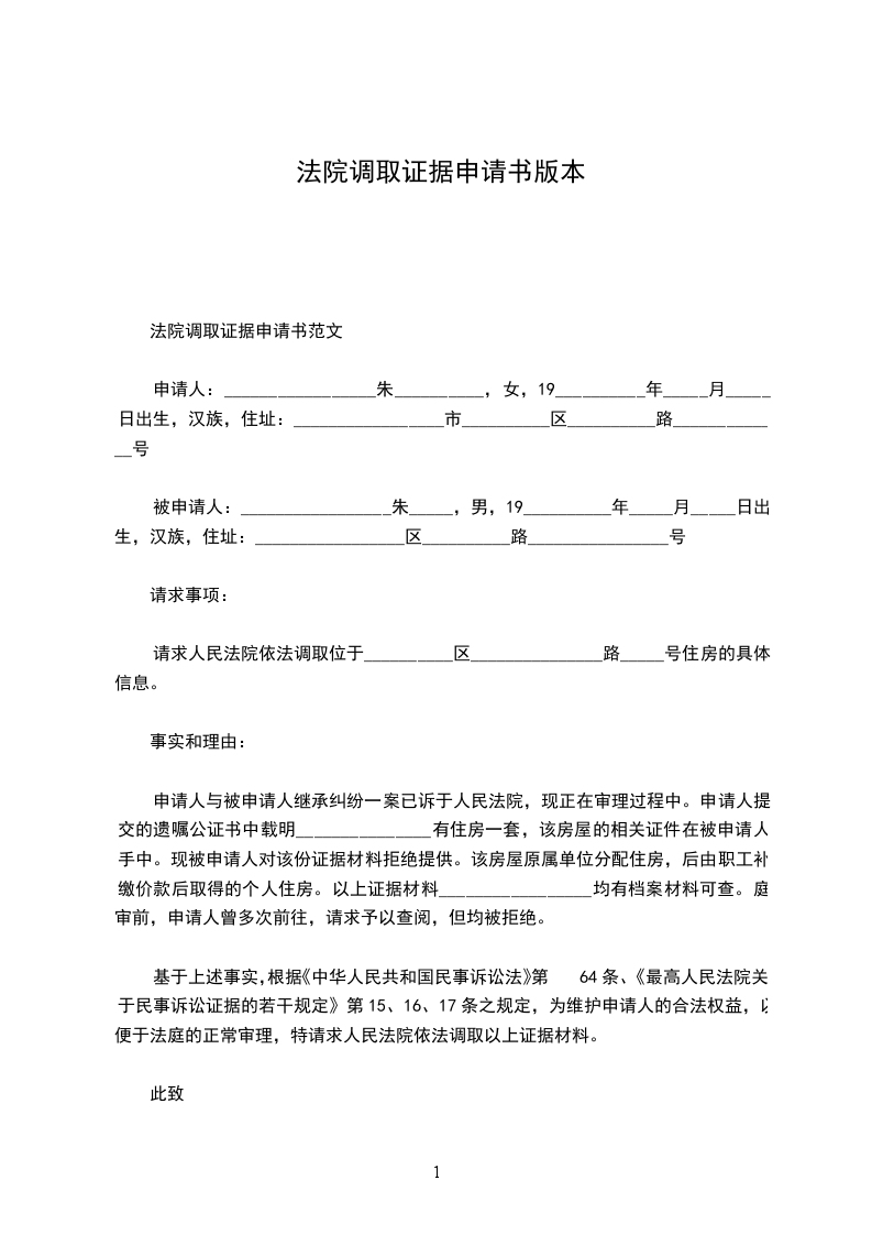 申请人与被申请人继承纠纷一案已诉于人民法院,现正在审理过程中。申请人提交的遗嘱公证书中载明_______________有住房一套,该房屋的相关证件在被申请人手中。现被申请人对该份证据材料拒绝提供。该房屋原属单位分配住房,后由职工补缴价款后取得的个人住房。以上证据材料_________________均有档案材料可查。庭审前,申请人曾多次前往,请求予以查阅,但均被拒绝。