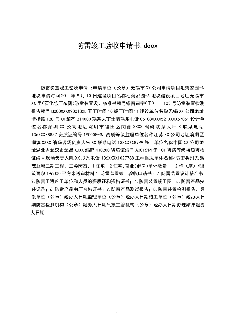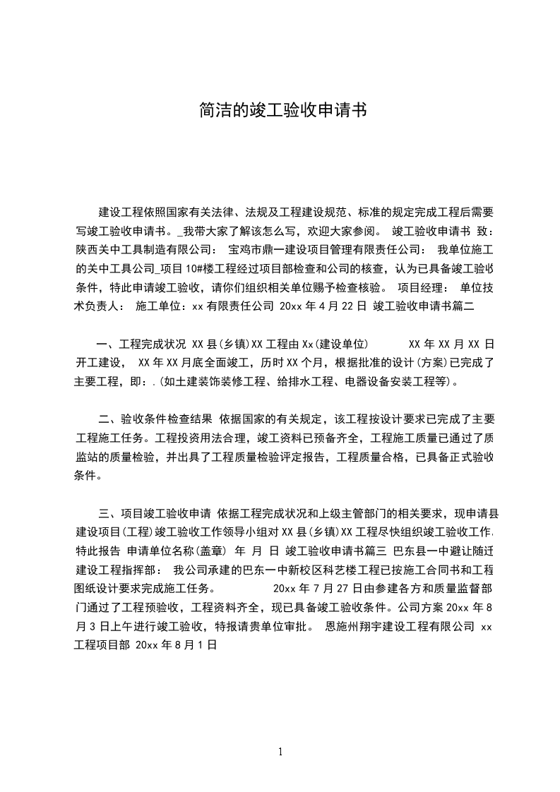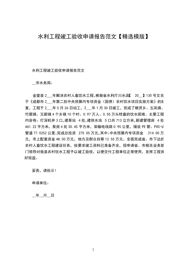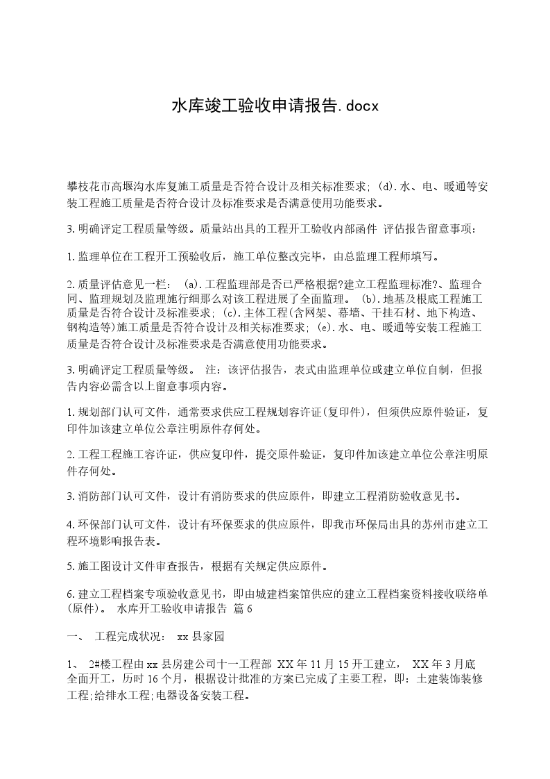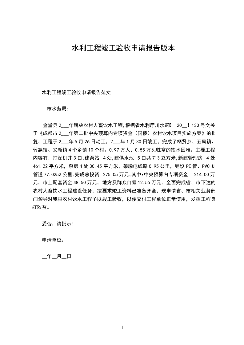 水利工程竣工验收申请报告范文