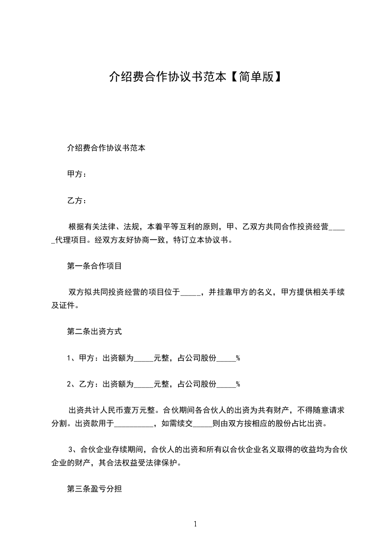 介绍费合作协议书范本