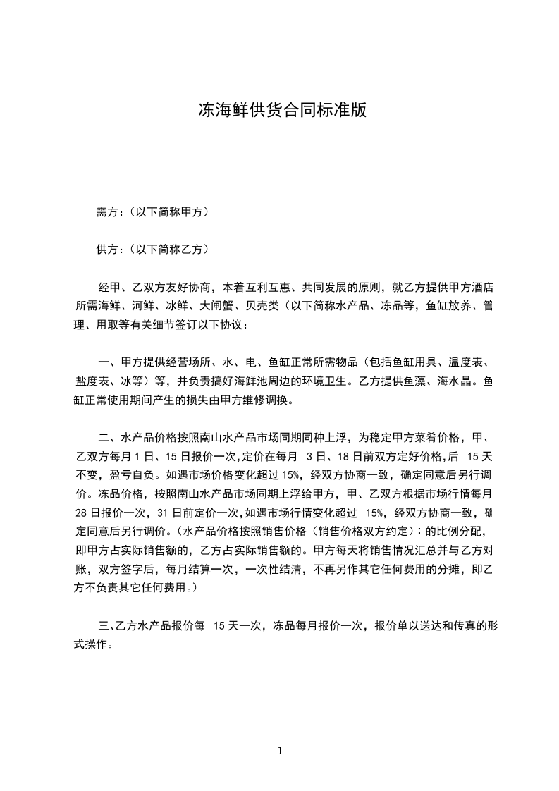 甲乙双方本着互利互惠、共同发展的原则。经友好协商,就甲方所需海鲜系列产品达成如下协议: