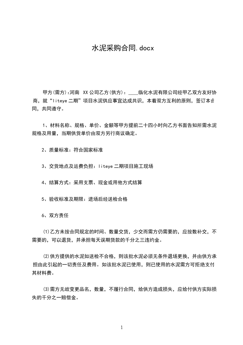 四、交货验收:交货时水泥质量验收以双方抽取实物试样或以卖方同编号水泥的检验结果为依据,无抽样封存的,以生产厂家封存样为检验依据。