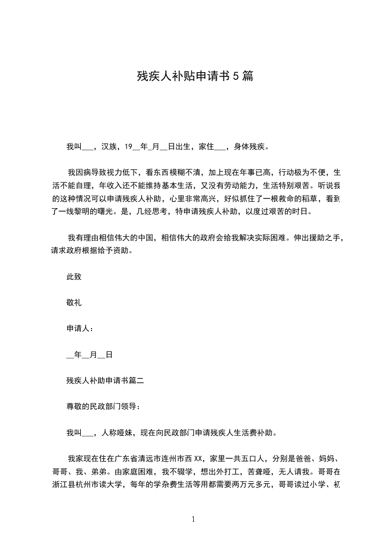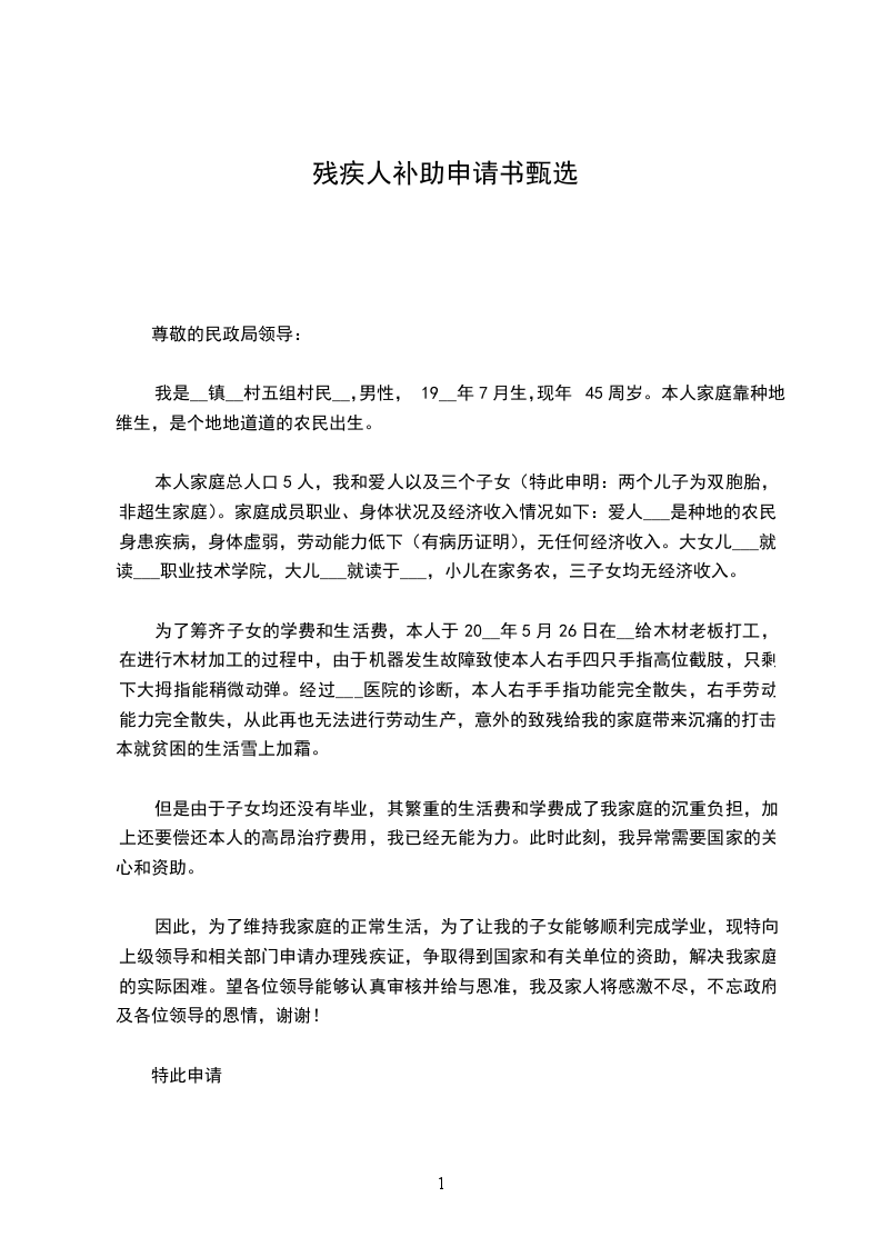 残疾人补办就业登记申请书