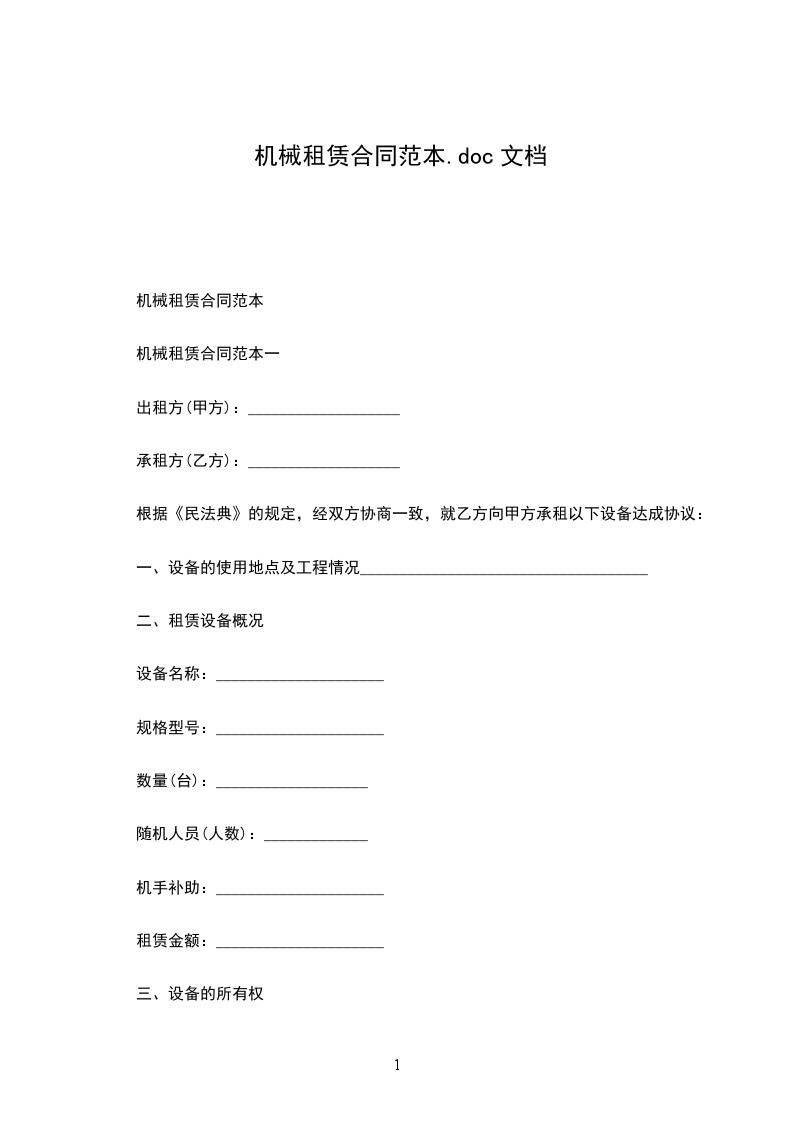 根据《民法典》的规定,经双方协商一致,就乙方向甲方承租以下设备达成协议: