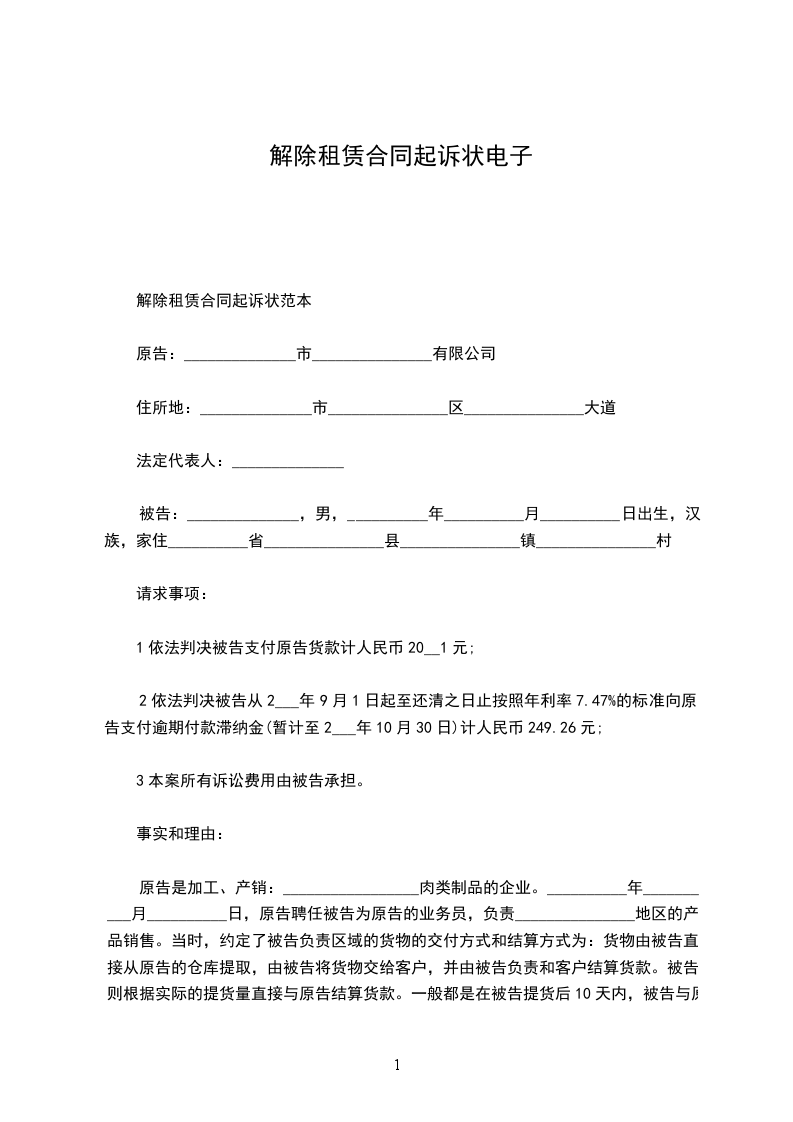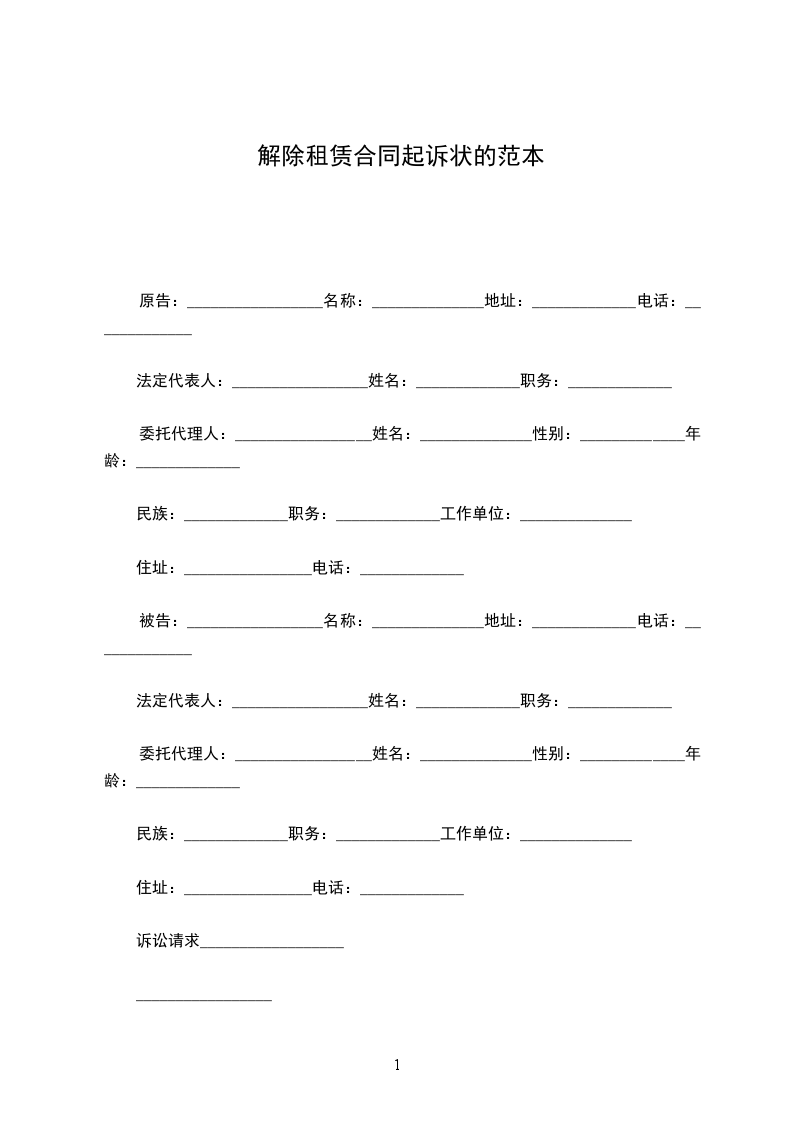 租赁合同解除起诉状