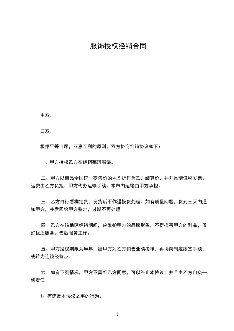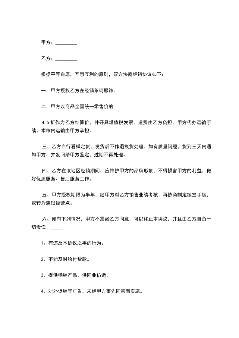 1.价格:丙方从甲方或乙方的提货价(经销价)统一规定为:甲方制订的经销价,乙方有权从甲方获取经销价。