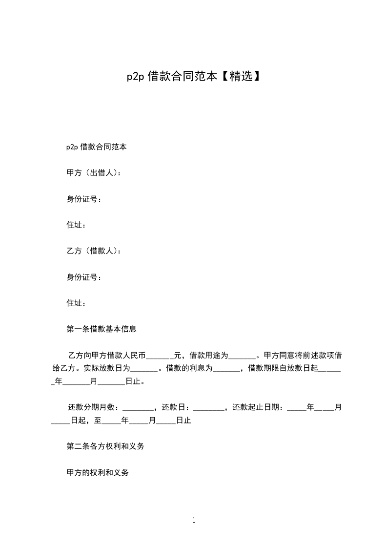 p2p借款合同范本