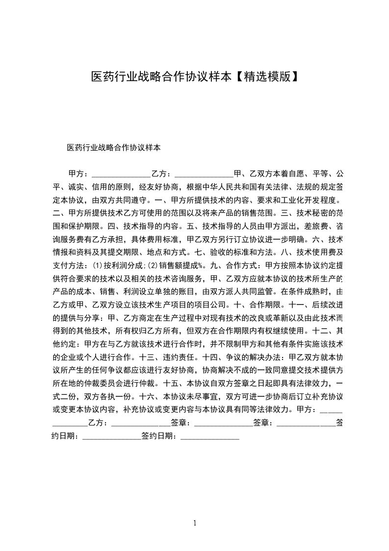 甲方:_______________乙方:_______________甲、乙双方本着自愿、平等、公平、诚实、信用的原则,经友好协商,根据中华人民共和国有关法律、法规的规定签定本协议,由双方共同遵守。一、甲方所提供技术的内容、要求和工业化开发程度。二、甲方所提供技术乙方可使用的范围以及将来产品的销售范围。三、技术秘密的范围和保护期限。四、技术指导的内容。五、技术指导的人员由甲方派出,差旅费、咨询服务费有乙方承担,具体费用标准,甲乙双方另行订立协议进一步明确。六、技术情报和资料及其提交期限、地点和方式。七、验收的标准和方法。八、技术使用费及支付方法:(1)按利润分成;(2)销售额提成%。九、合作方式:甲方按照本协议约定提供符合要求的技术以及相关的技术咨询服务,甲、乙双方应就本协议的技术所生产的产品的成本、销售、利润设立单独的账目,由双方派人共同监管。在条件成熟时,由乙方或甲、乙双方设立该技术生产项目的项目公司。十、合作期限。十一、后续改进的提供与分享:甲、乙方商定在生产过程中对现有技术的改良或革新以及由此技术而得到的其他技术,所有权归乙方所有,但双方在合作期限内有权继续使用。十二、其他约定:甲方在与乙方就该技术进行合作时,并不限制甲方和其他有条件实施该技术的企业或个人进行合作。十三、违约责任。十四、争议的解决办法:甲乙双方就本协议所产生的任何争议都应该进行友好协商,协商解决不成的一致同意提交技术提供方所在地的仲裁委员会进行仲裁。十五、本协议自双方签章之日起即具有法律效力,一式二份,双方各执一份。十六、本协议未尽事宜,双方可进一步协商后订立补充协议或变更本协议内容,补充协议或变更内容与本协议具有同等法律效力。甲方:_______________乙方:_______________签章:_______________签章:_______________签约日期:_______________签约日期:_______________