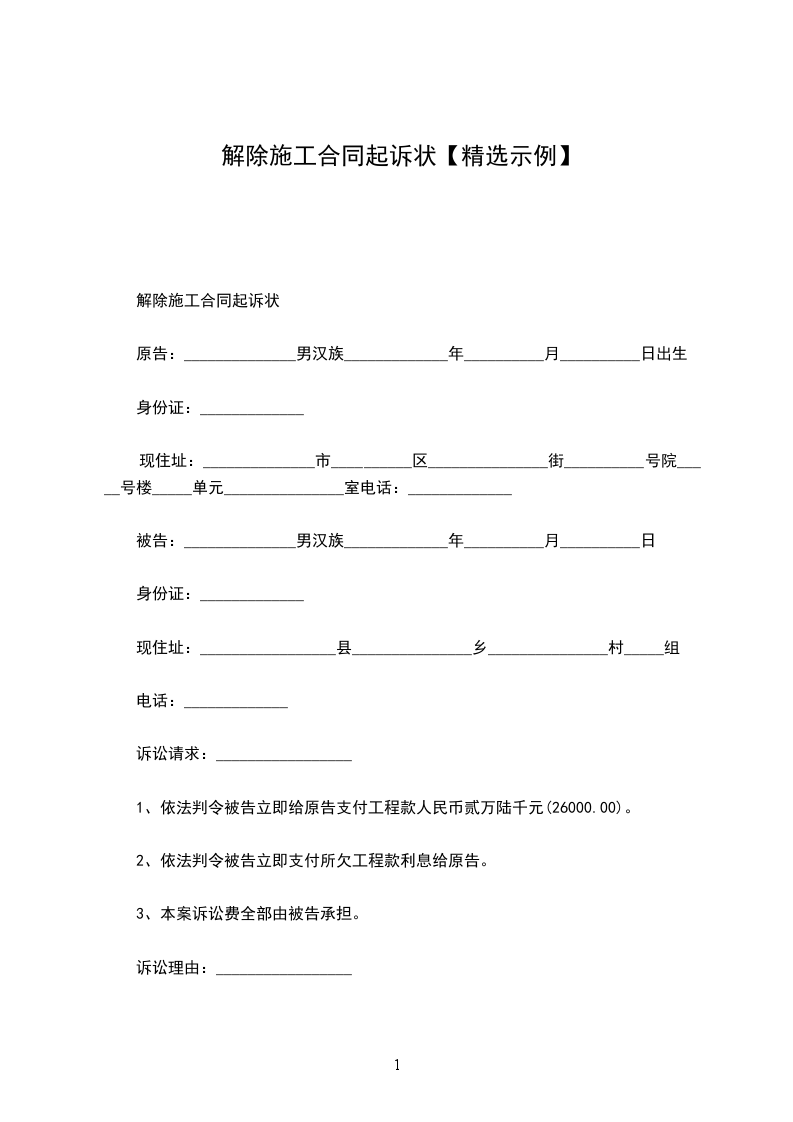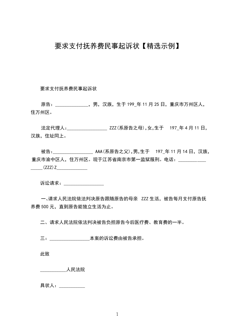 原告:_________________,男,汉族,__________年__________月__________日出生,住_________________,电话:______________。