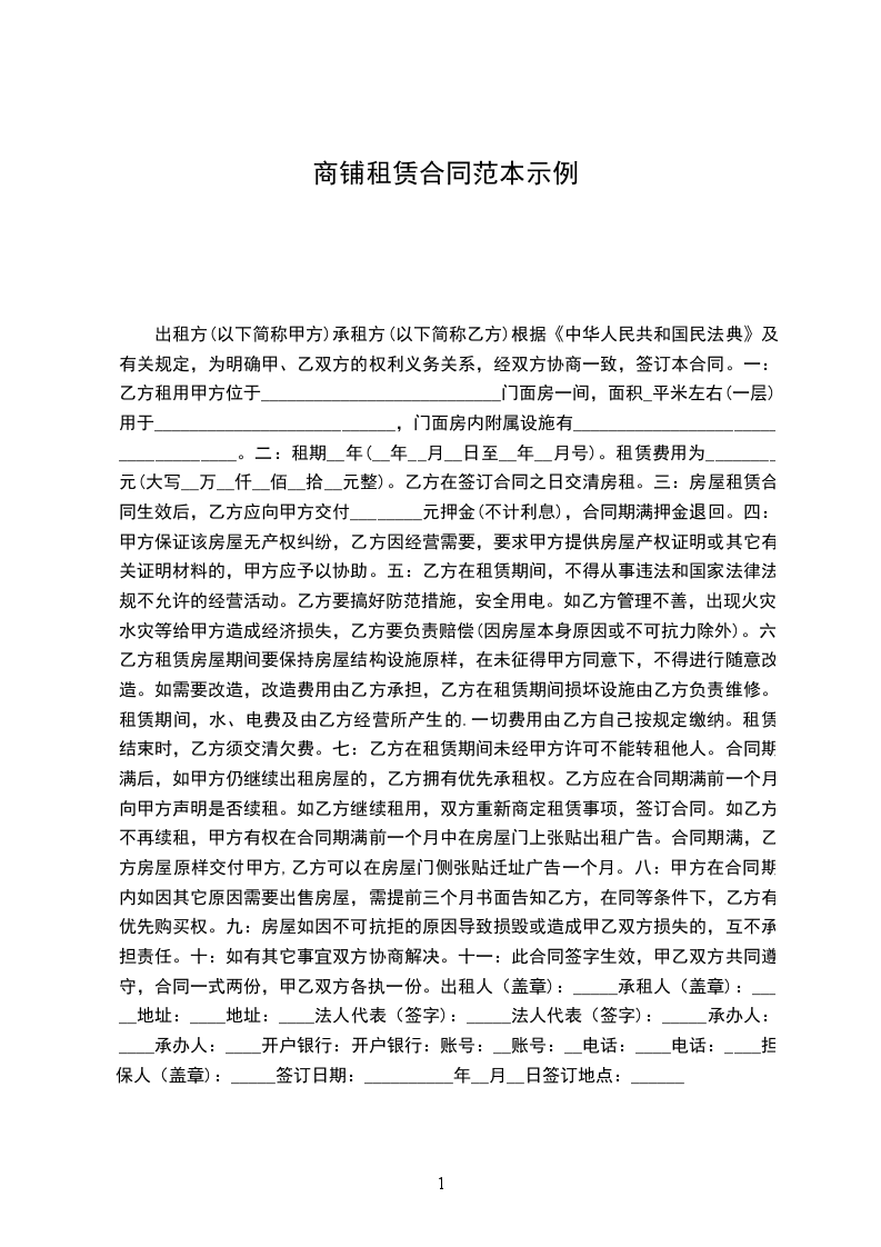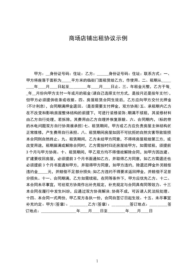 出租方出租的商铺坐落地址:_________号,建筑面积_________平方米。