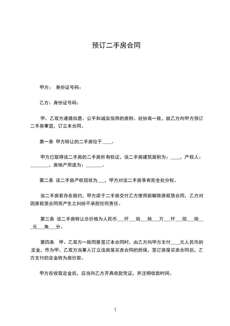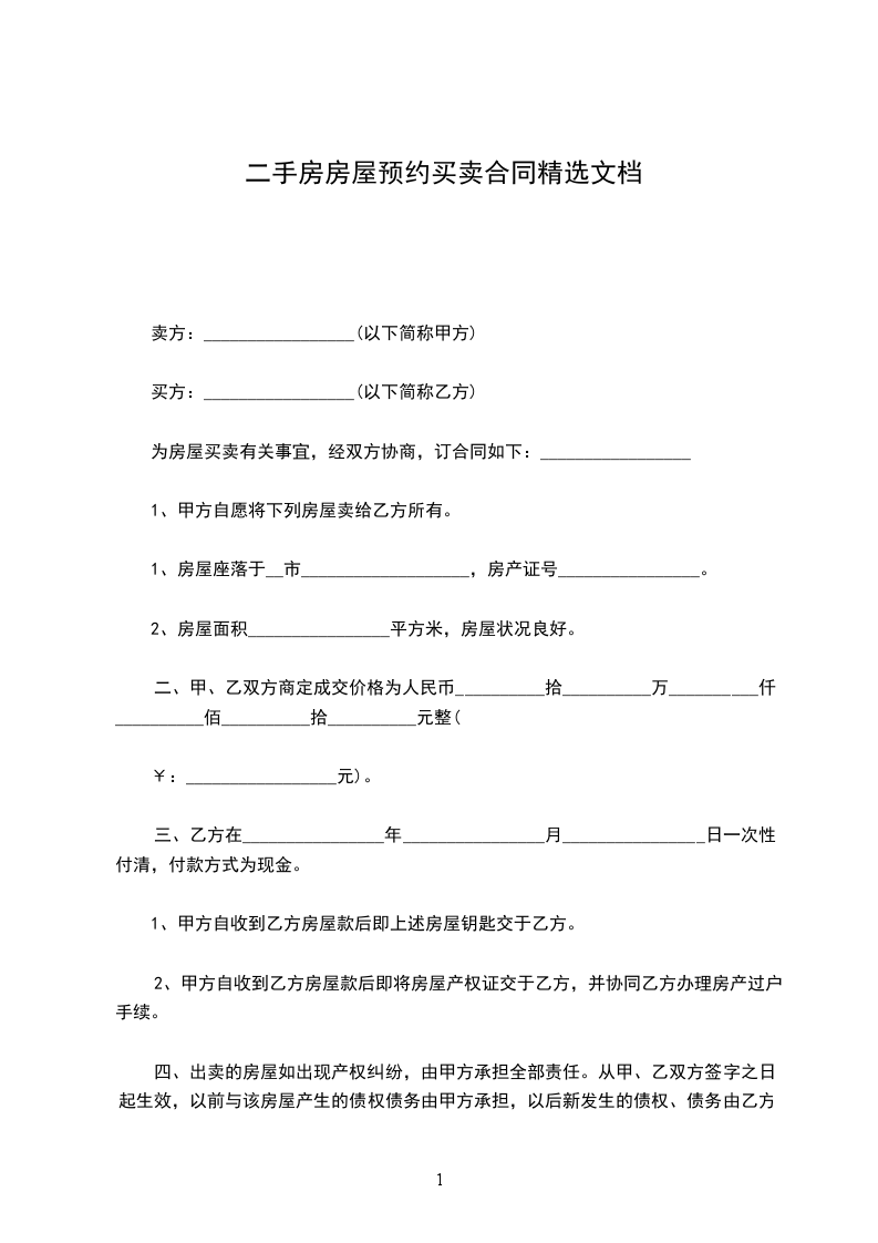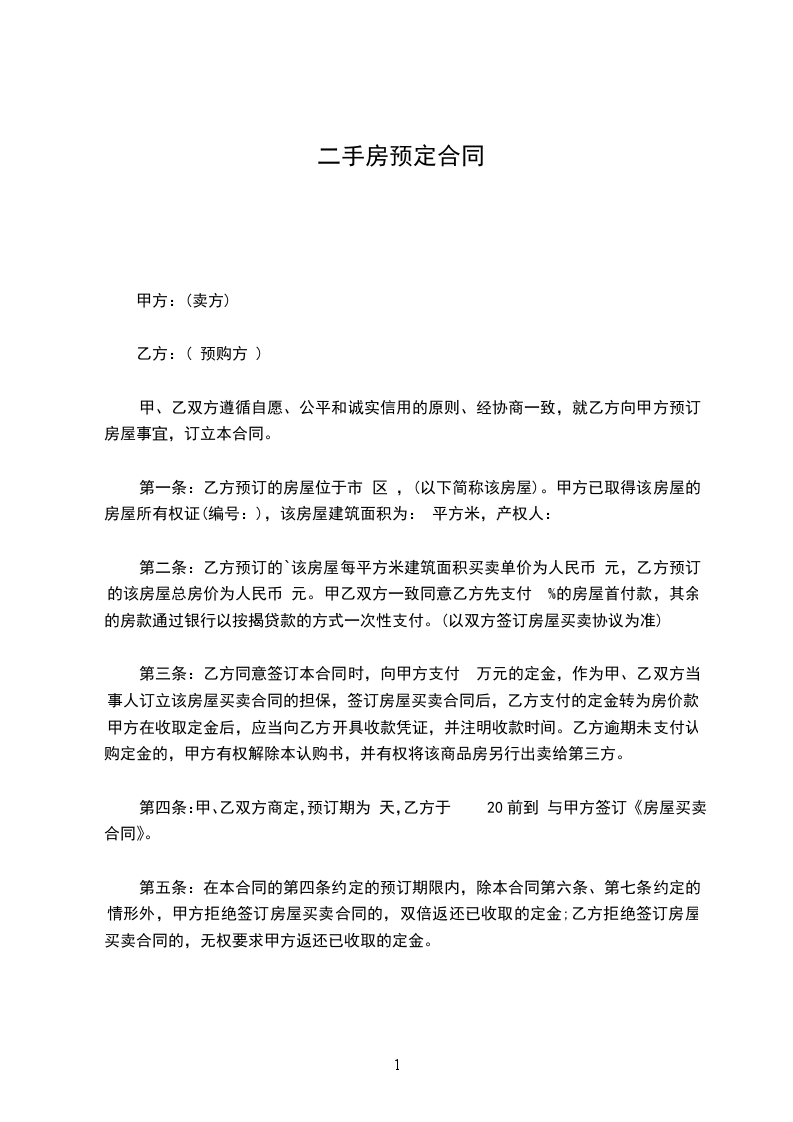 二手房房屋预约买卖合同