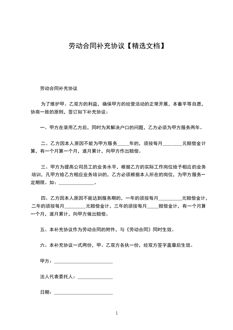 劳动合同补充协议