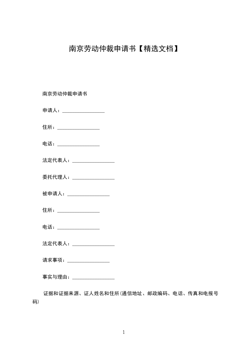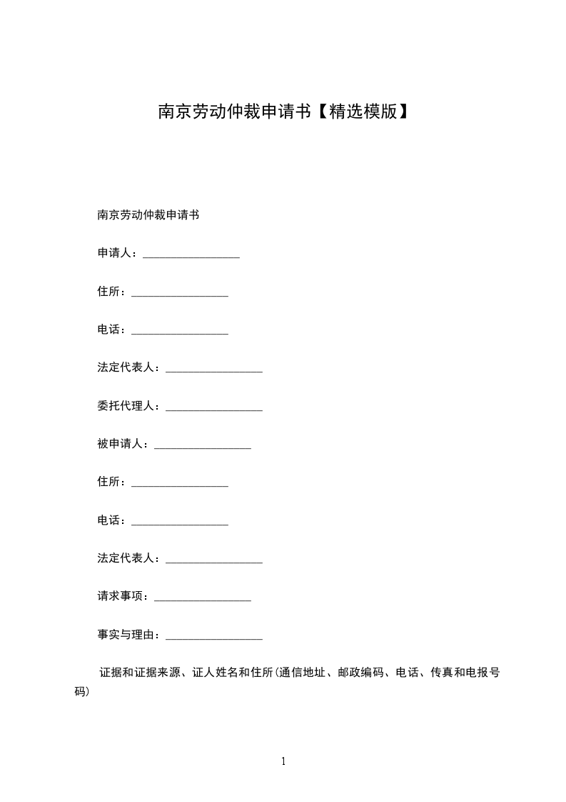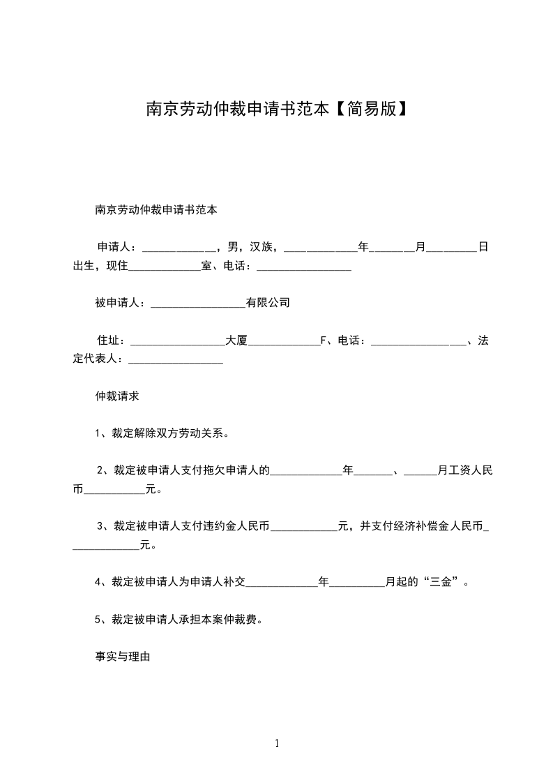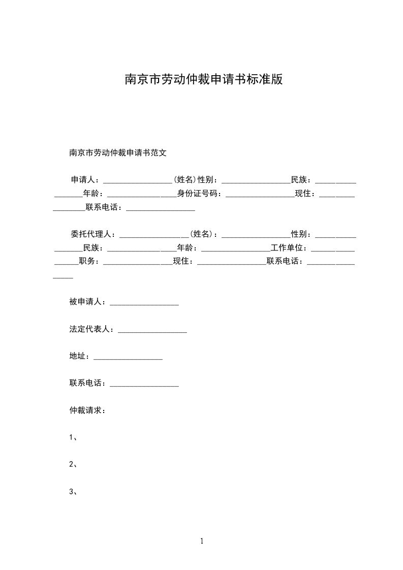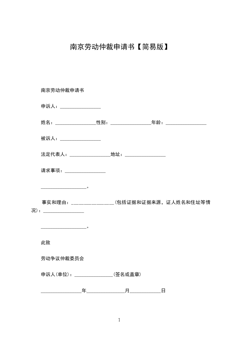 南京劳动仲裁申请书范本