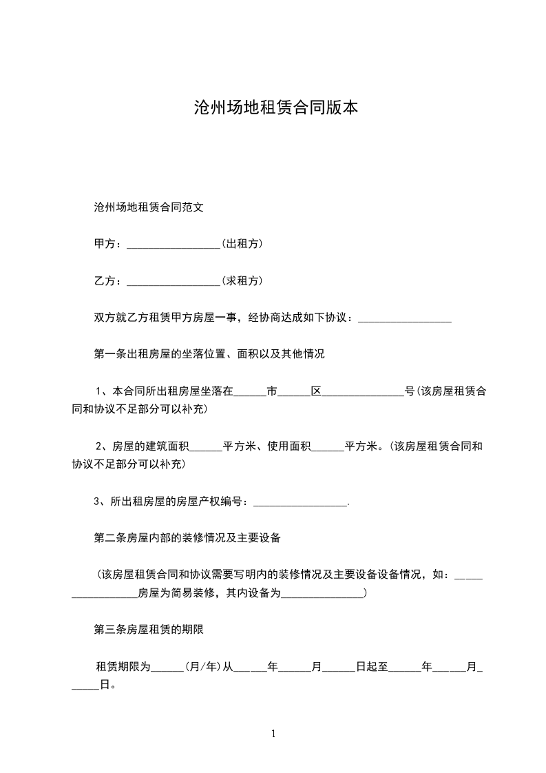 沧州场地租赁合同范文