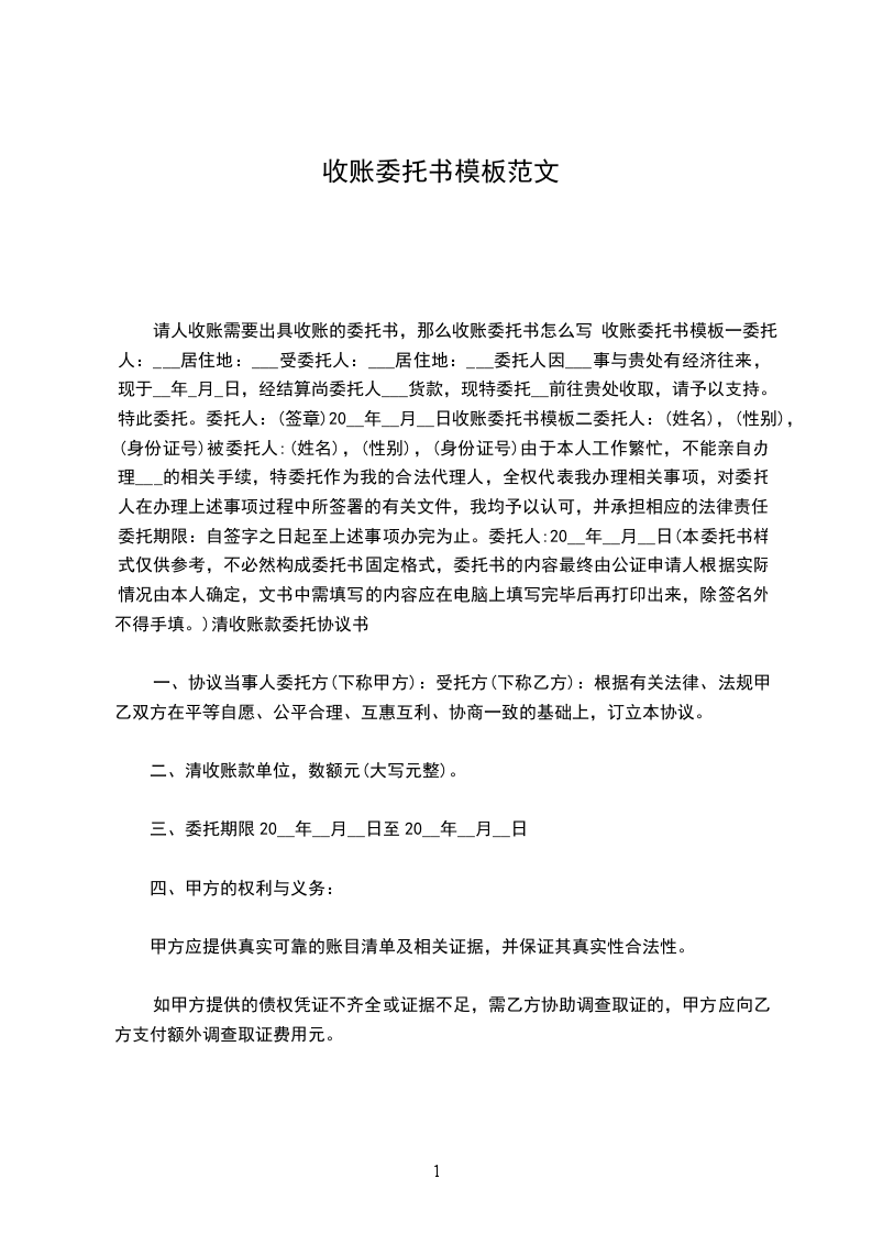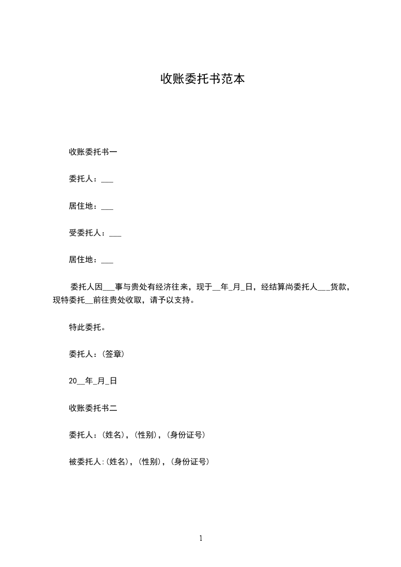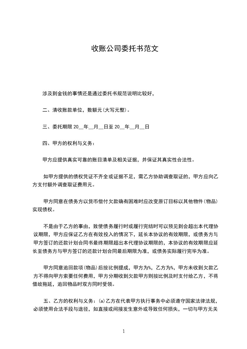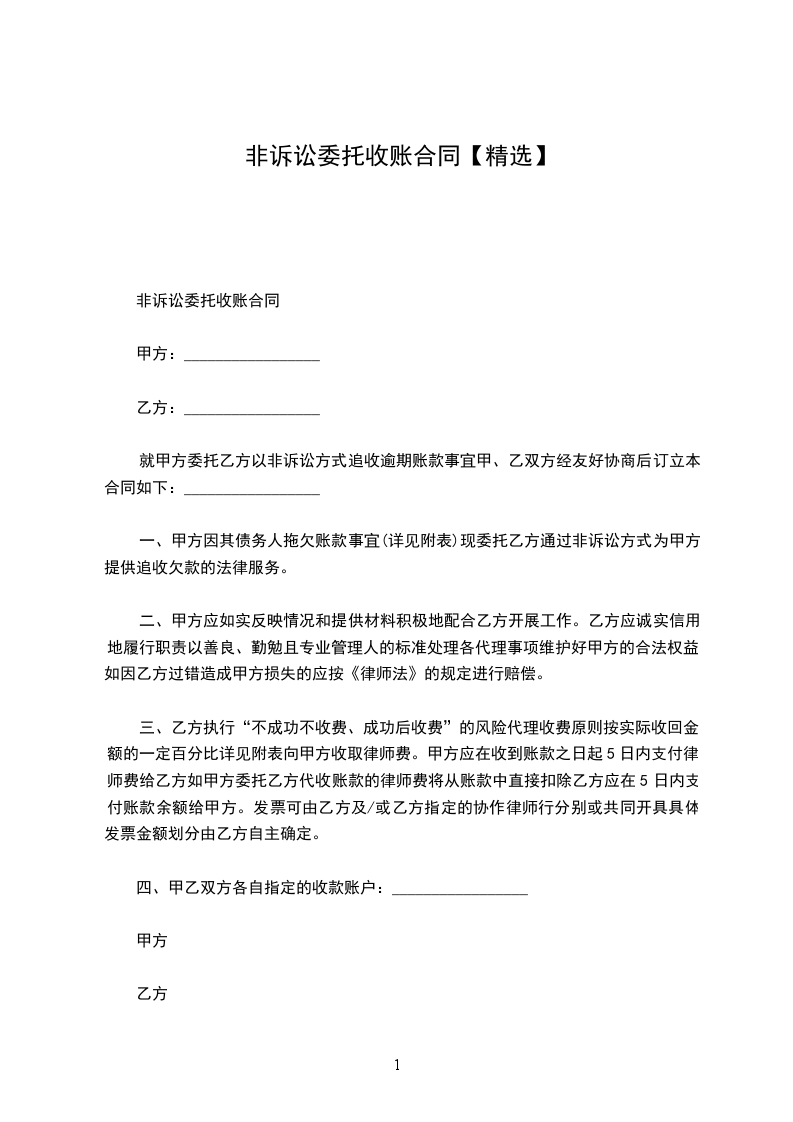 非诉讼委托收账合同